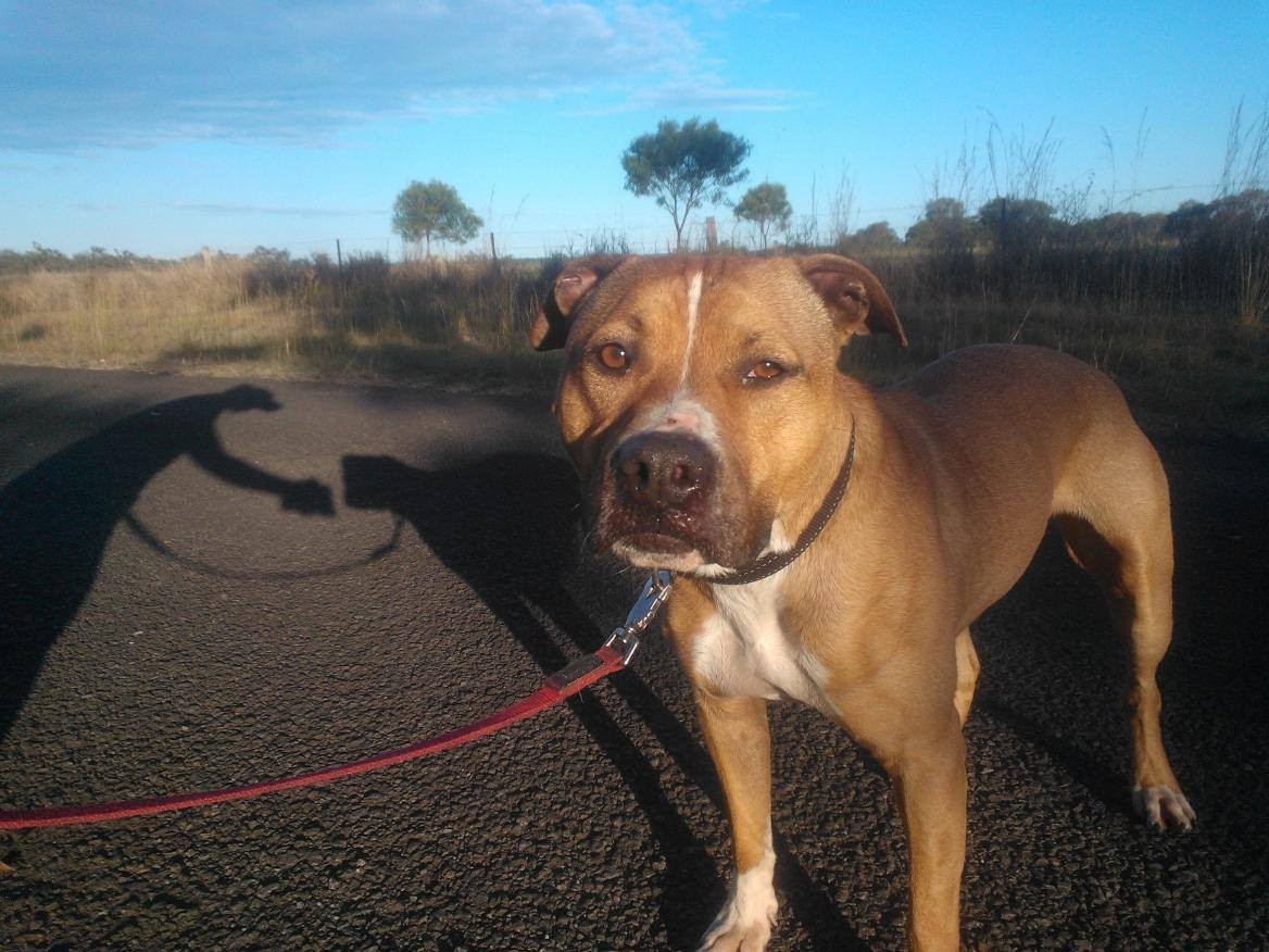 A typical Staffy boy that loves to play, loves to cuddle and enjoys companionship throughout the day and into the night.