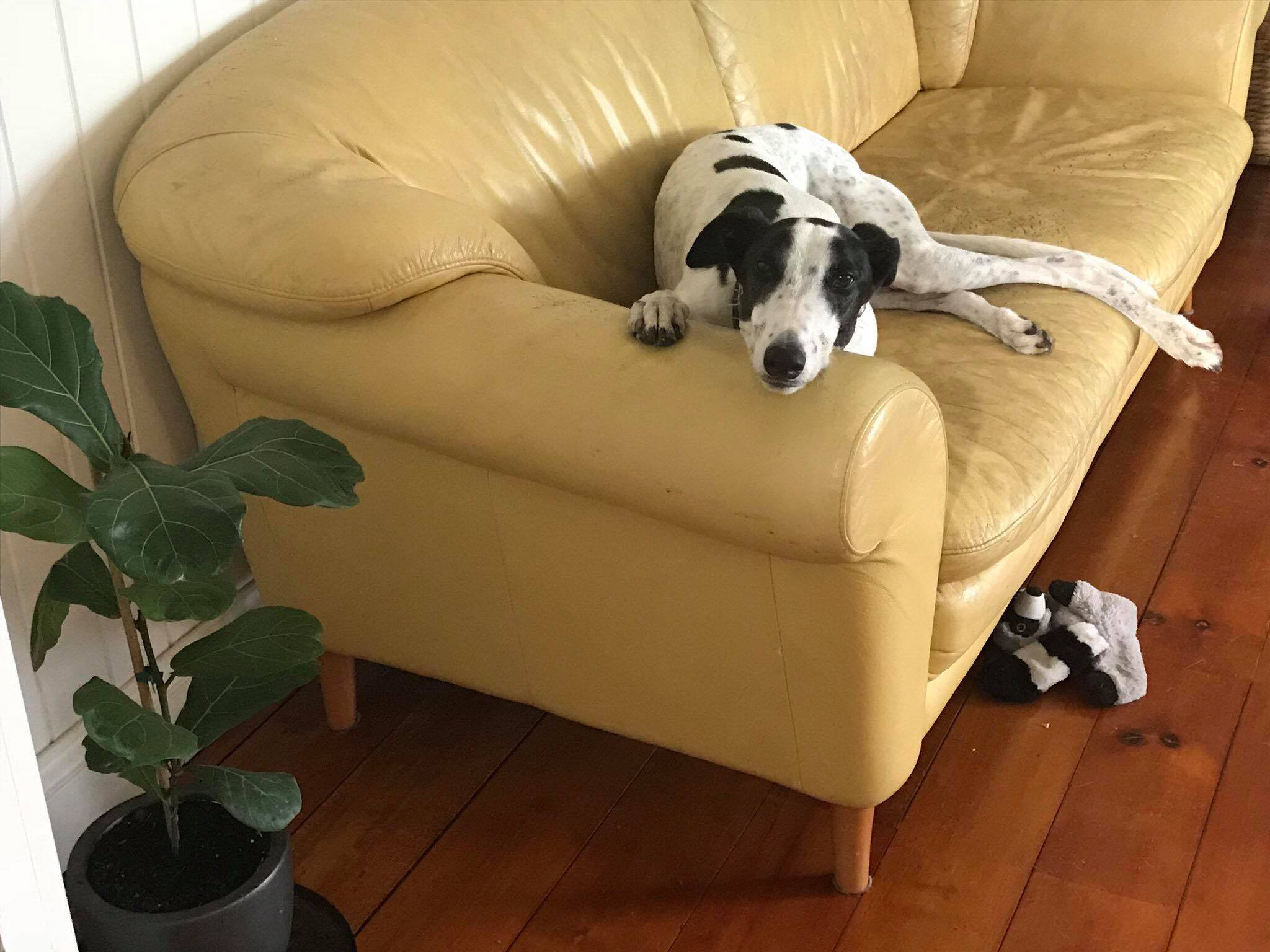 Captain Morgan’s other hobbies include goofing around with slippers, demolishing treats, and curling himself into a ball with his head on a pillow! He loves to keep a devoted eye on his humans. His health is good, with just a few injury niggles from his racing days which are easily managed. The Captain is ready to find that special person to share a lifetime of lazy, happy days.