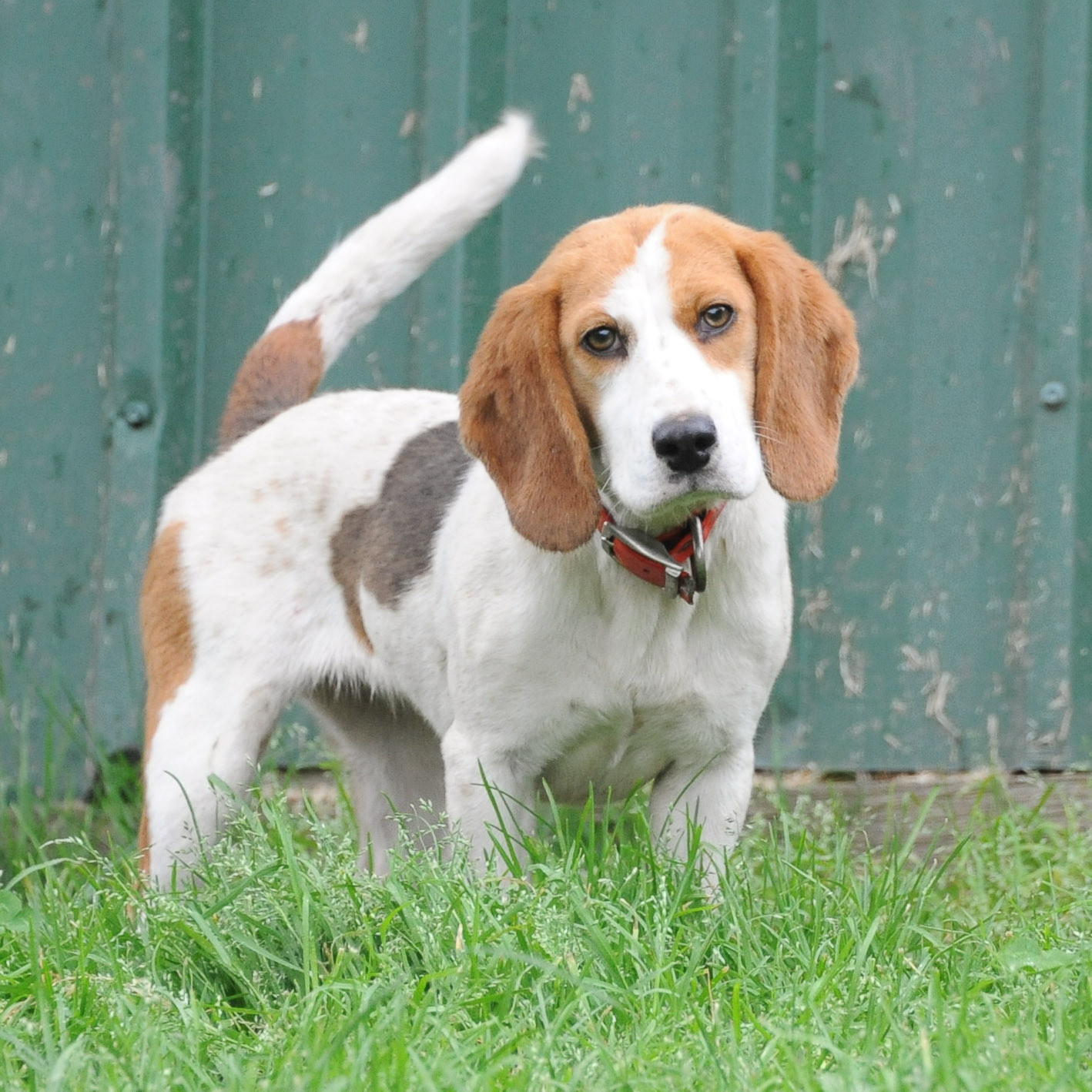 Sasha came barrelling into our lives at 100 miles an hour and hasn't stopped moving since! Sasha was purchased at 10 months of age by a young man in his 20s that wasn't quite sure how to handle a young hound and especially one that bunny hopped rather than walked so Sasha came into our care.