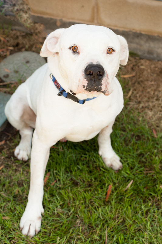 Hi there my name is Whitey! I am a beautiful sweet American Bulldog x looking for my forever home.