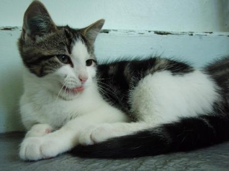 Wookie is a handsome little boy, and in typical kitten style very inquisitive and playful. He is well accustomed to spending time around other cats, and is becoming more and more happy to have a cuddle each day, despite having had little contact with people until now. Wookie is looking for a home where he can explore indoors and out, and a family that will keep him out of (too much!) mischief and make him feel loved