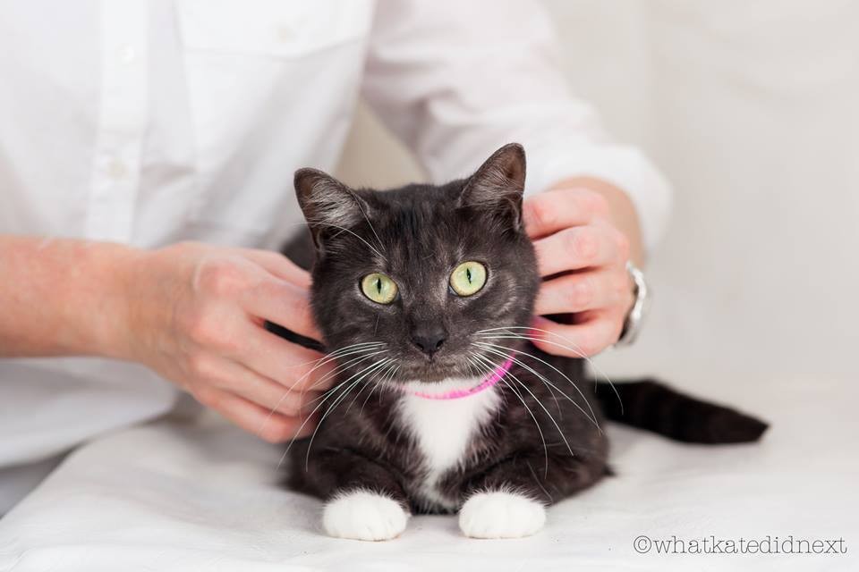 Ash is a black smoke cat who was quite timid about coming out for photos. However, she was content to settle in a box and let things take their course.