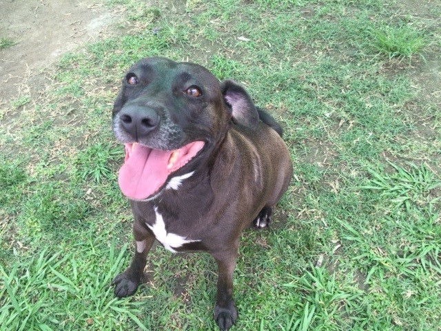 Hello, my name is Miss-T. I am a very well mannered 5 year old Staffordshire Bull Terrier mix girl. As a mature lady, I'm looking for the simple things in life. I'm passed the hectic hussle and bussle, and would much prefer a comfy lounge, some tasty food, a relaxing walk through the park and some loving companionship. I do need my new family to keep an eye on my waistline, as I am a little plump, though daily walks will have me back to trim taught and terrific in no time. I mix well with other dogs and could make a lovely companion to an existing dog (meet and greets apply) or I would be happy being the centre of your attention. As I meet the criteria for the Senior for Senior program I could come FREE to the holder of a current Senior card. I can't wait to meet you.