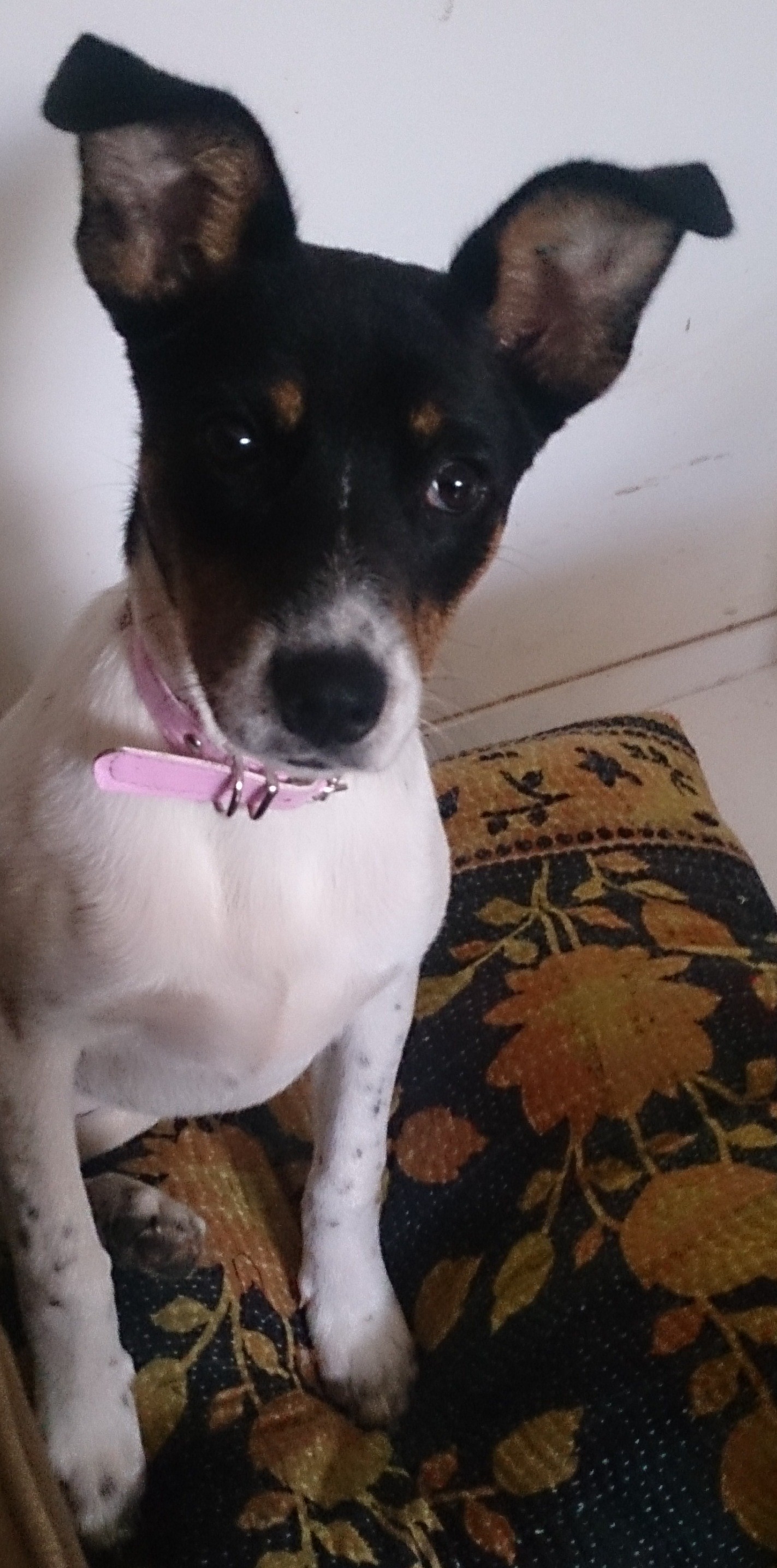 Her mother is Foxie sized and Brandy stands about 45cm, with large ears like a kelpie.