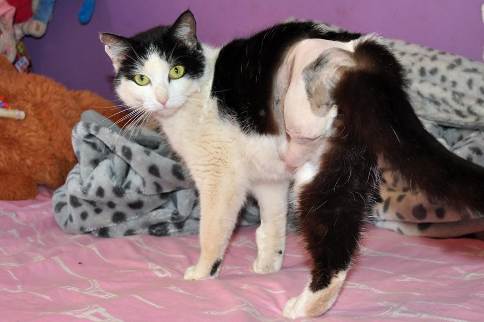 Monatana was found by a member of the public with a badly broken leg. He took her to the pound. While impounded and with a severely broken leg Montana gave birth to 3 kittens, sadly only one survived. We hared about Montana and her situation and made many phone calls and arrangements. the following morning Montana was prepped for surgery and we moved her remaining kitten to a surrogate mother ( who is doing really well!) Montana had her rear leg amputated.