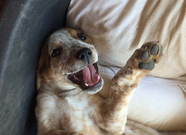 Patchy had not been exposed to a lot before coming into care, and was quite timid with anything new. But he is quickly growing into a happy, confident playful little pup. Patchy is a bit of a water baby, loves puddles, the shell pool and the hose.