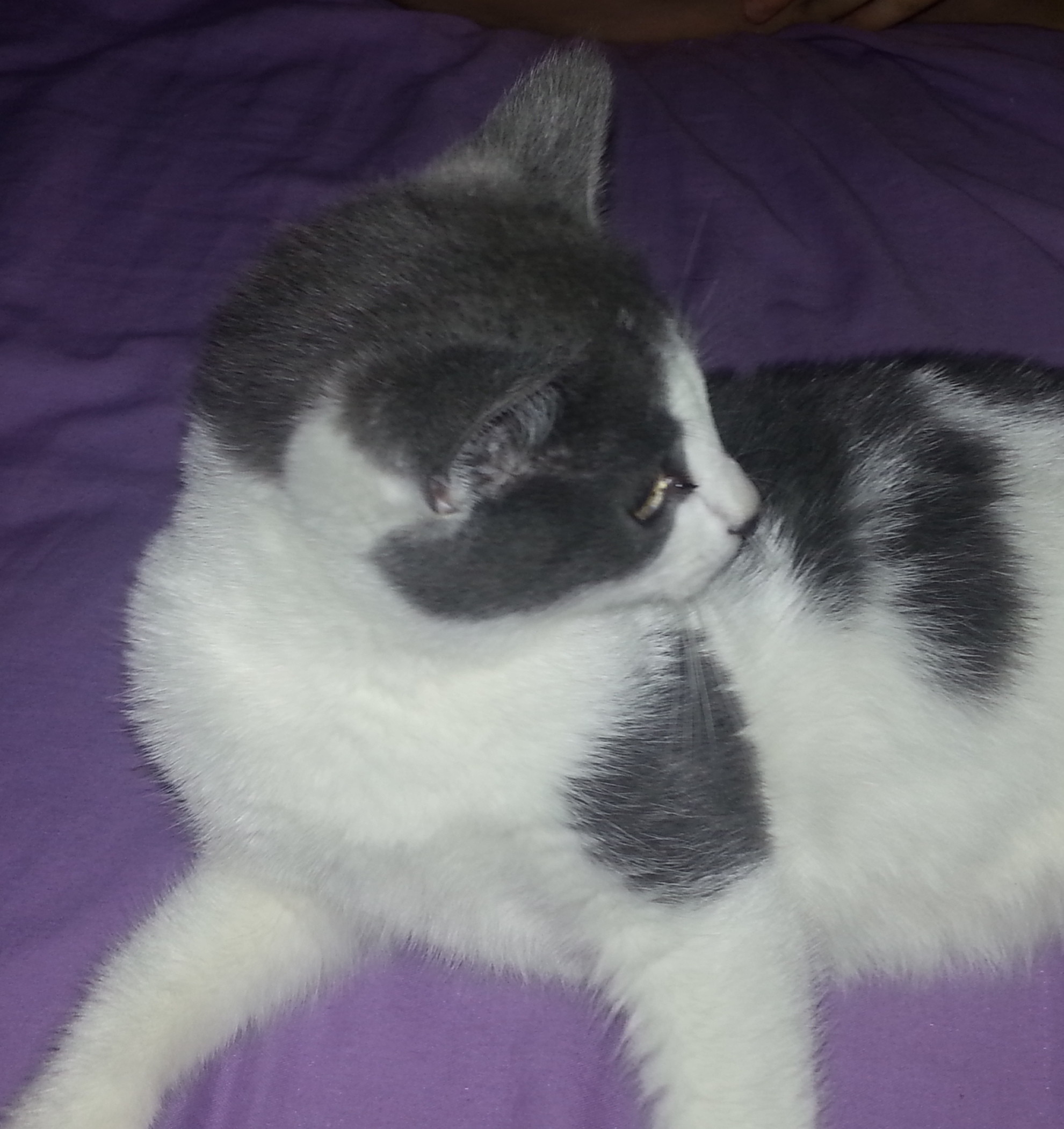Because of her condition Misty needs a relatively quiet household, and wouldn't be suited to one with a young family where kids will want to play with her constantly. It is important she gets her rest. Grandchildren would be fine....in fact she would love visits as she adores kids and loves to play and cuddle with them, but she just doesn't know her limits and will run and chase as long as anybody is up for it, which is normal for any kitten, but not good for one with a heart condition.
