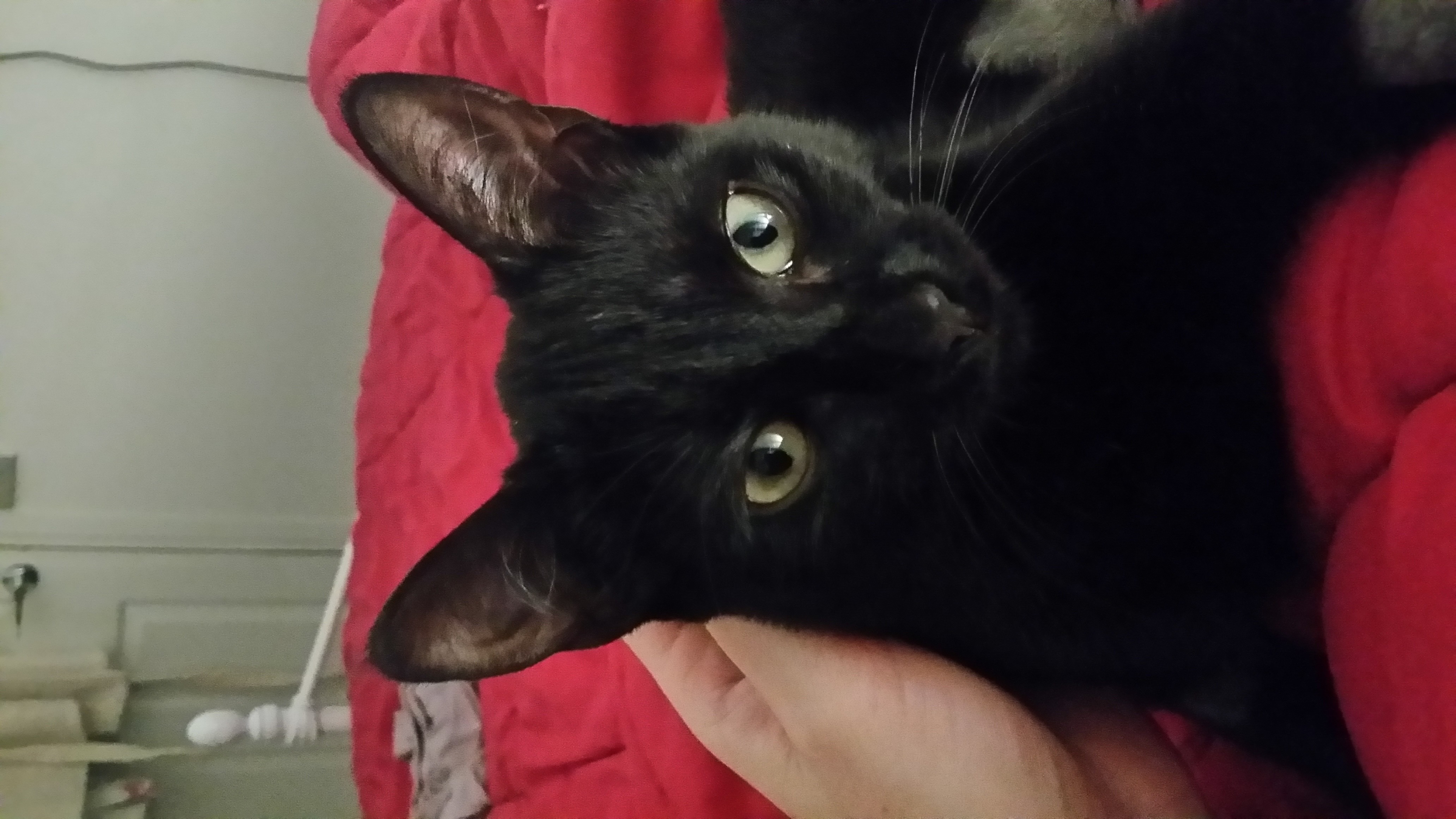 Lilly is an affectionate and playful girl. She will greet you when you come home, and will talk to you when she wants a pat. She loves to climb and loves to be with her humans. She enjoys cuddles before bedtime, and will often sleep around your neck or on your chest while you watch TV.
