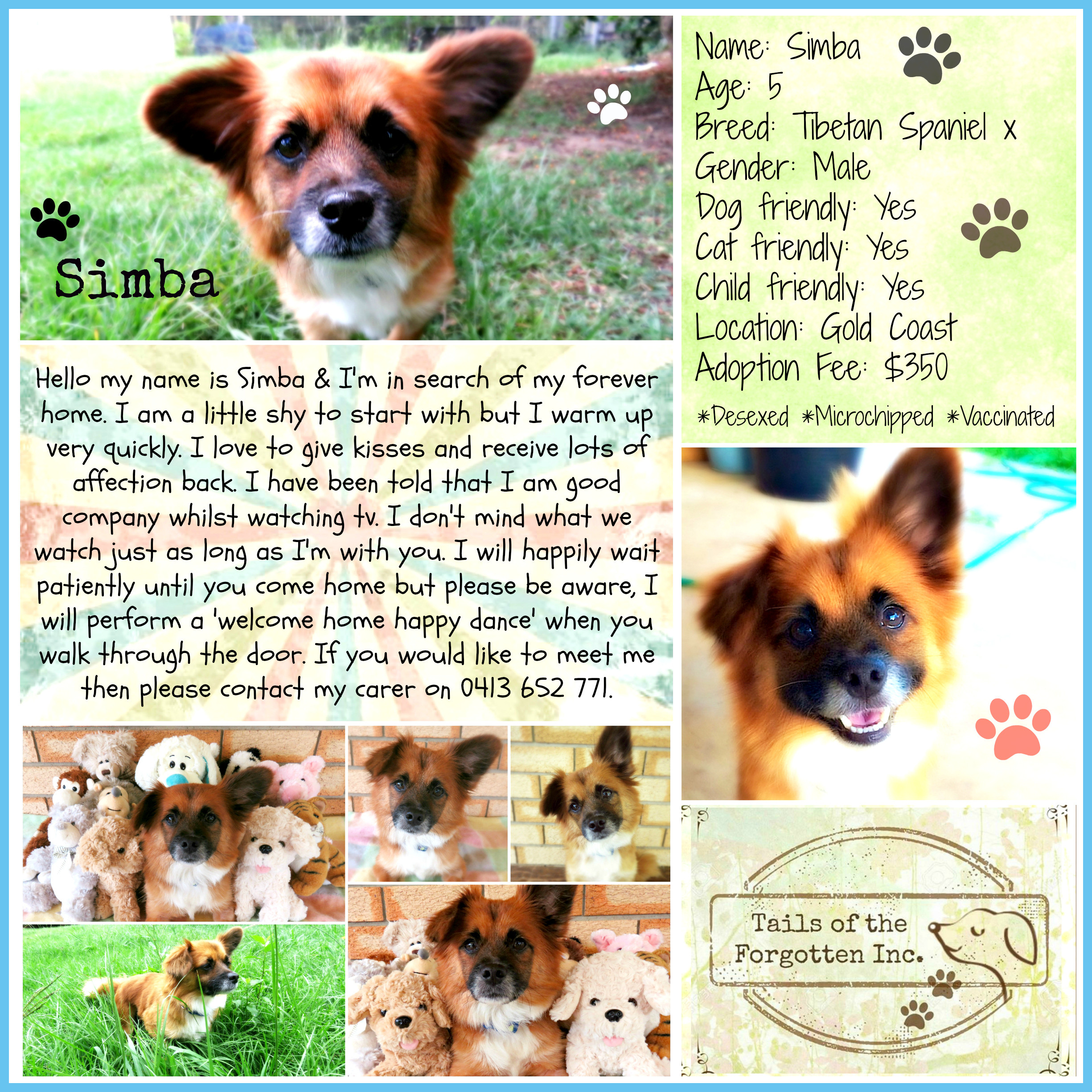 If you are considering adopting a new family member please have a scroll through the available dogs' profiles, by visiting our website, http://www.tailsoftheforgotteninc.com If you have seen a dog that you are interested in meeting then please fill out the Adoption Application Form via our website link, http://www.tailsoftheforgotteninc.com/adopt.html and someone will be in contact with you as soon as possible.