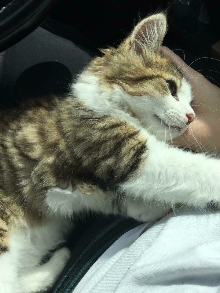 Cinnamon is litter box trained and currently eating Royal Canin kitten food.