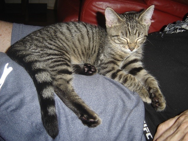I am an adorable little man full of life and I love to play. I get along well with other cats once I get to know them. I hope they like a bit of wrestling. I'm a very curious kitten; the whole world is a fascinating place full of wondrous things to be explored. If you're not watching closely you might find me hidden in your linen cupboard or out investigating the garden. I can be real livewire! I would be happy playing in your home if it has toys and a scratching post. I am fine with dogs but I don't realise that they can be dangerous so please look after me when there is a dog around. I look forward to meeting my new family.