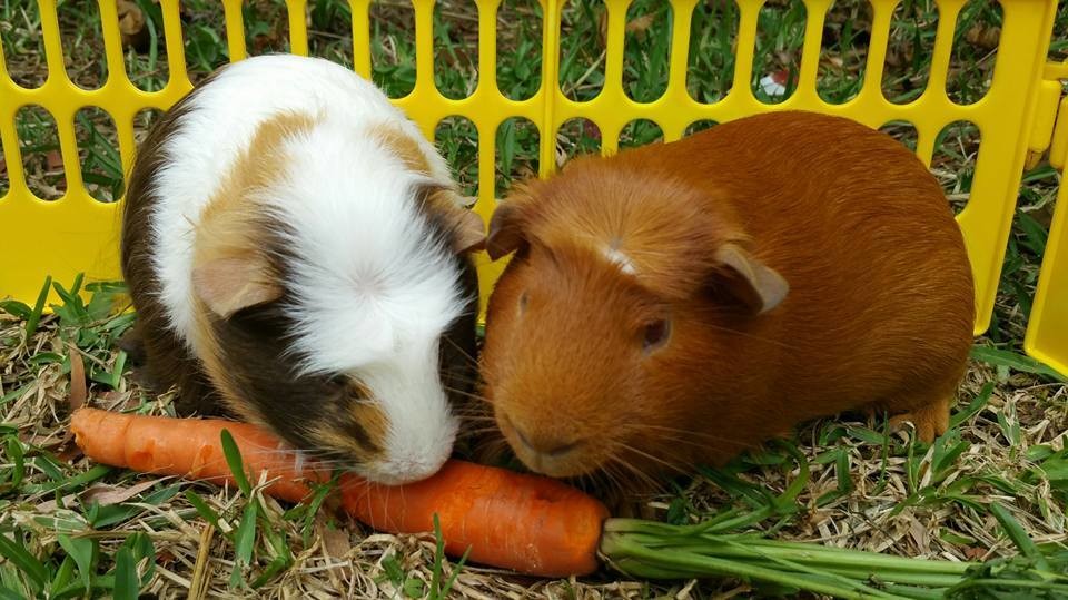 Meet the tamest Guinea Pigs...Ever! Chokito is a 6mth old coronet mix and Latte a 6mth old crested guinea pig.