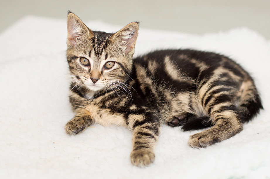 Chad is a super playful little kitten who loves playing with people toys and other kittens (like his sister Alice). He can be a little shy at first but in no time at all he'll be out exploring and climbing on anything he can.