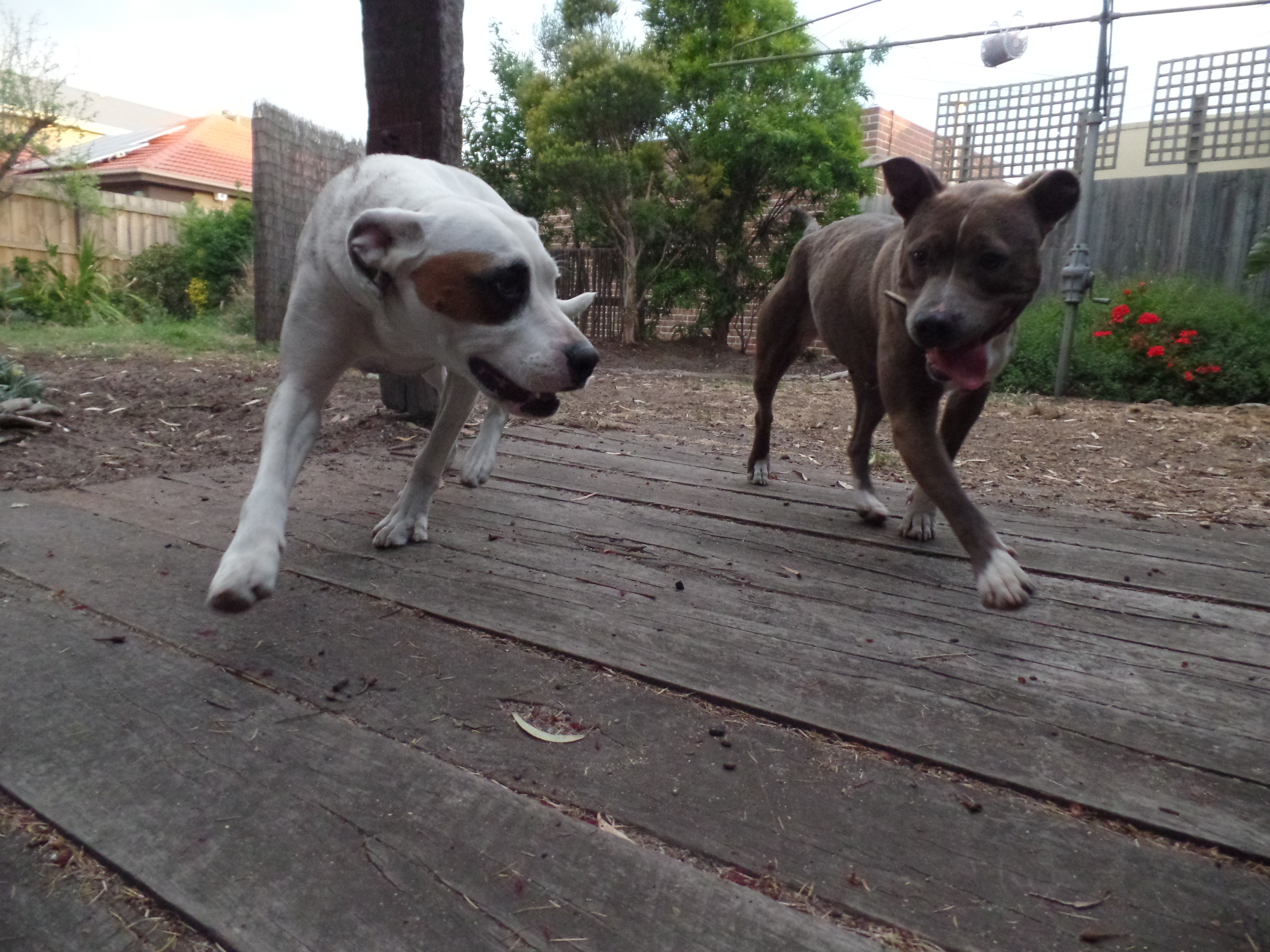 Darling Skye has had it pretty rough.. She was surrendered to the pound because she chased chickens, was meant to be taken by a rescue in SA who then pulled out, AOSR stepped in to take her on. Skye then thought she had hit the jackpot and was adopted by a family who already had a female staffordshire. After 12 months, that unfortunately has come to an end as Skye and the other families dog aren't getting a long anymore. Skye has a tendency to be a little bit toy possessive so is possibly best suited to a single dog only home. in saying that, prior to her going to what she thought was her new home, Skye was happily living with two other female adult dogs and there was never any issues. She does like chasing cats so it would be best if you don't have cats either. Skye is nearly 2 years old now, she was 11 months when she was taken in by AOSR, and has spent 12 months with this family. Skye would benefit from ongoing training. Secure fencing is a must as she does like to jump.