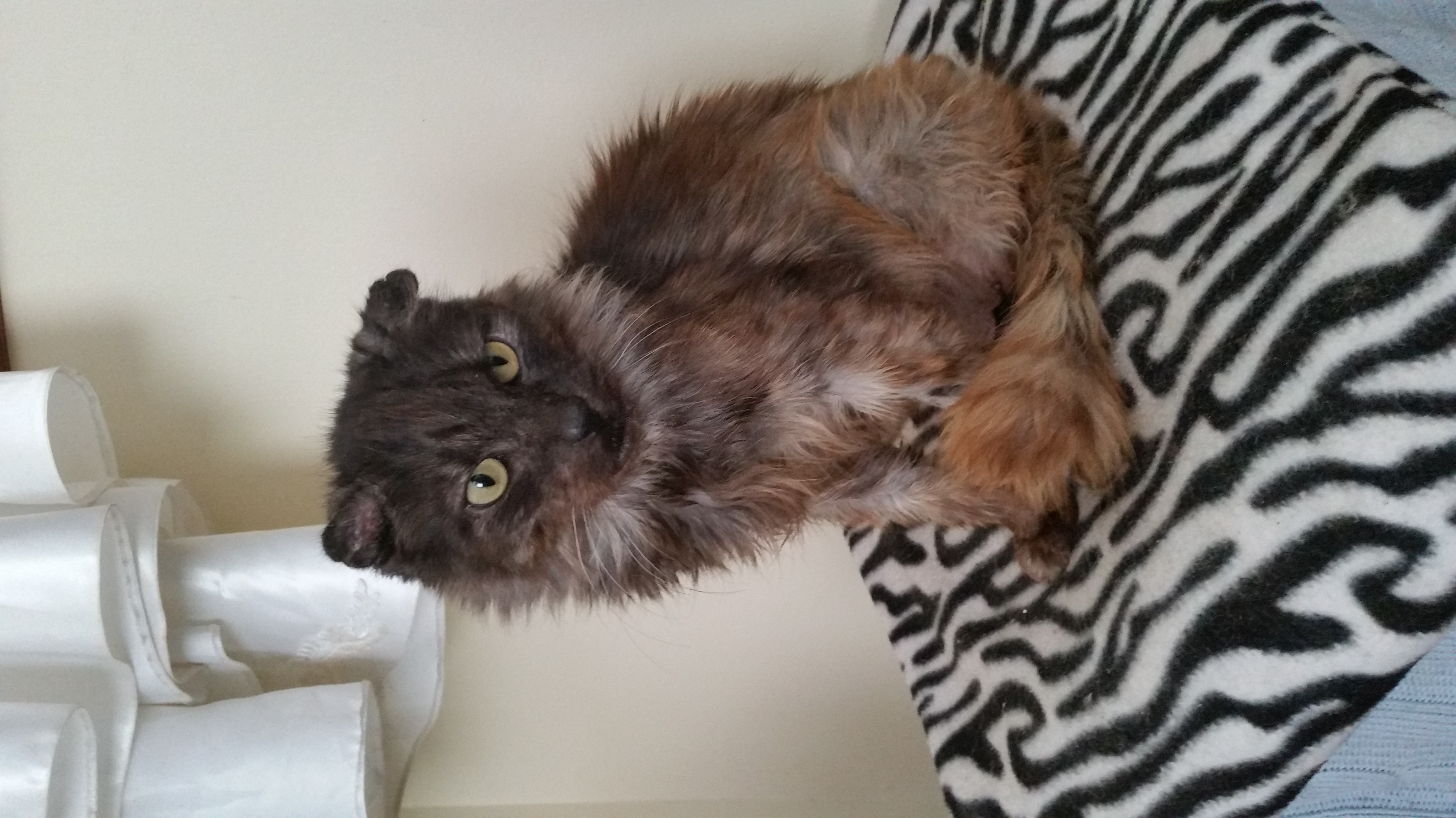 This sweet girl has had it rough. When I first saw her at the pound I knew she was going to be special. She was so skinny, she had a skin condition due to fleas and was in a bad way. Jemima has bounced back and is such a smoocher. She loves to gently head butt you which is so cute. She loves cuddles and kisses and loves a good pat. She loves me to brush her with a soft brush.