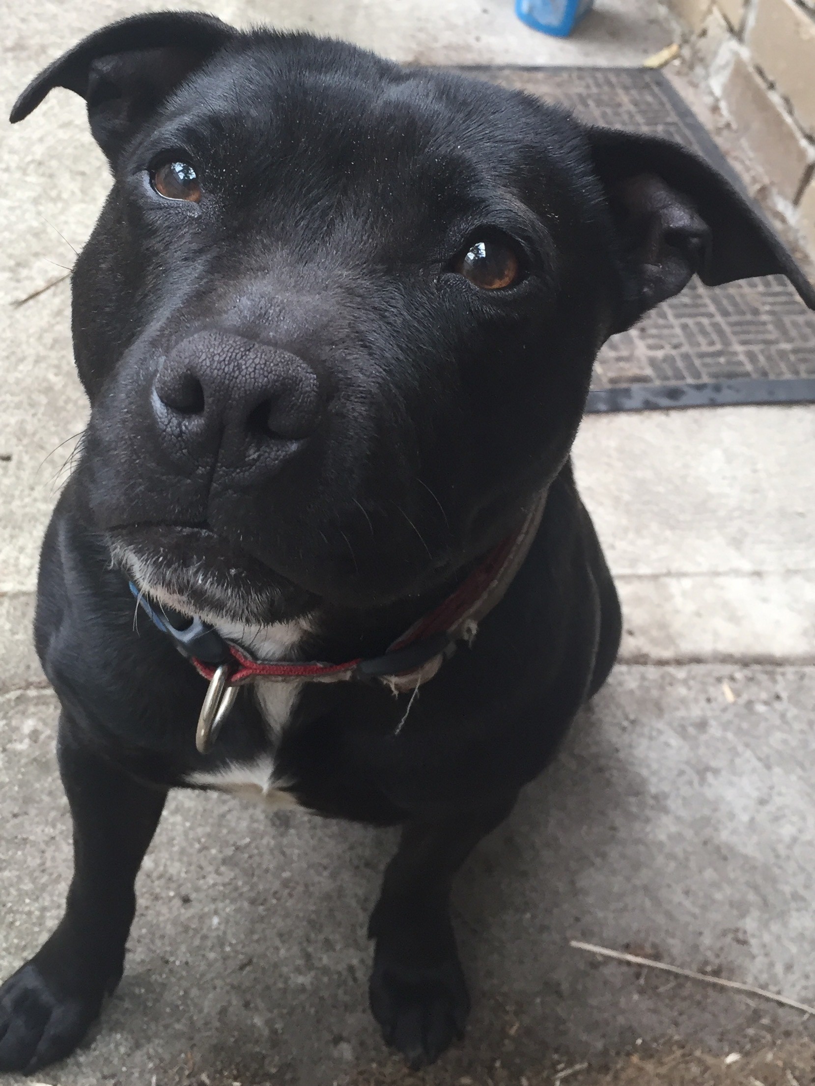 Lexi is a beautiful little staffy whose favourite things are cuddles and chasing balls. She is black with a white chest and a beautiful nature. She is great with kids (currently living with three) and also gets on well with her staffy foster brother. She also loves to cool down in the pool on a hot day.