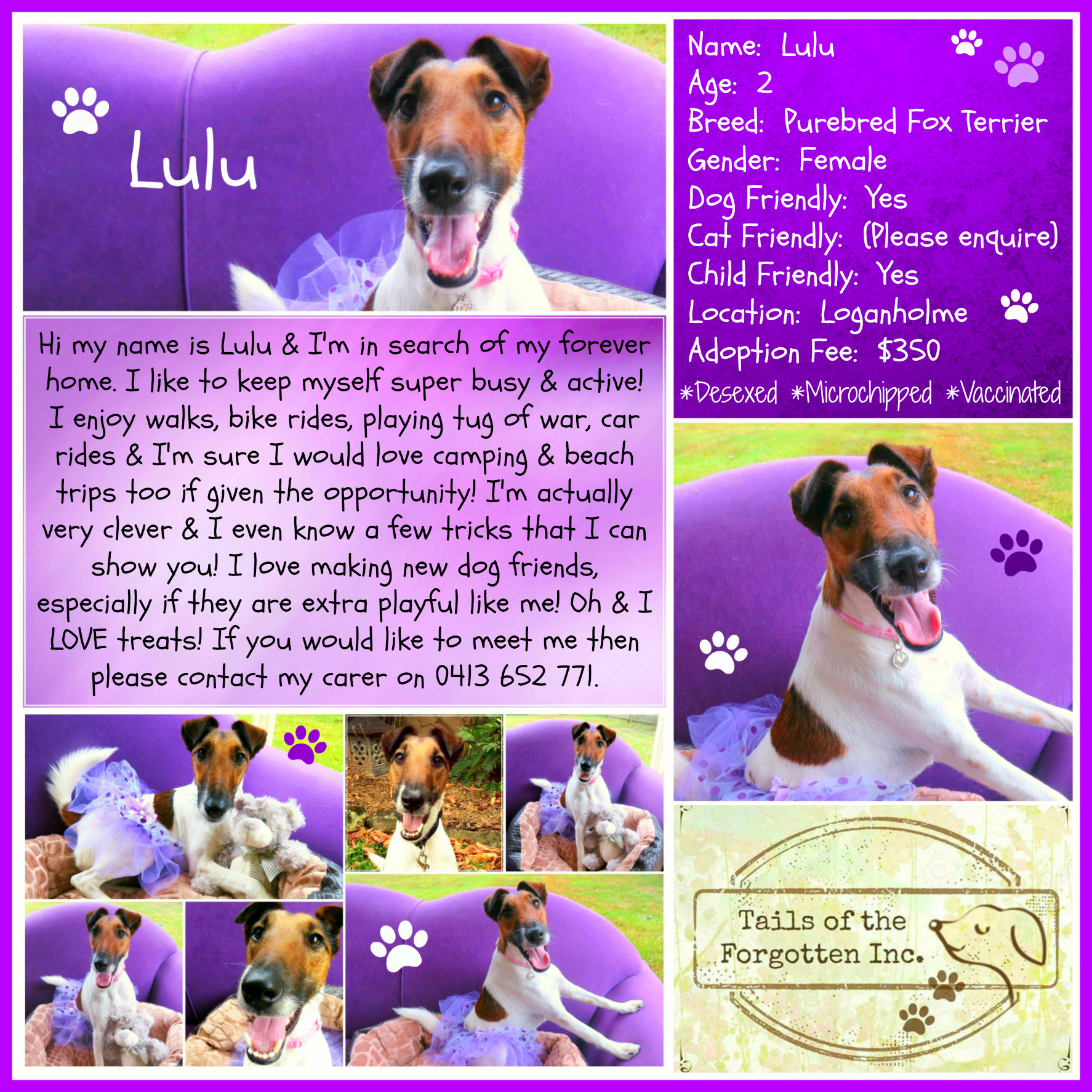 If you are considering adopting a new family member please have a scroll through the available dogs' profiles, by visiting our website, http://www.tailsoftheforgotteninc.com If you have seen a dog that you are interested in meeting then please fill out the Adoption Application Form via our website link, http://www.tailsoftheforgotteninc.com/adopt.html and someone will be in contact with you as soon as possible.