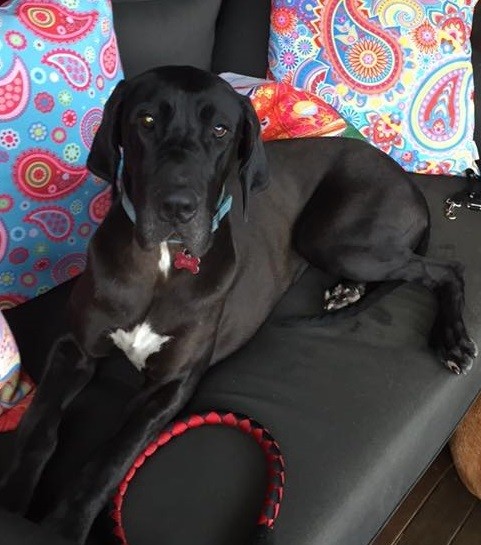 Midnight is a young and bouncy young Dane who is currently seeking a new home through no fault of her own. She is fine with kids but obviously needs to be supervised and she can get excited), fine with other dogs and has never encountered a cat.