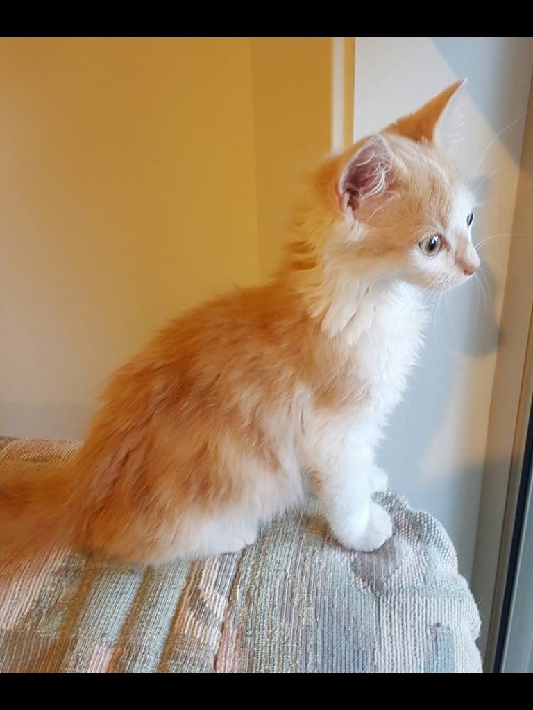 This little guy Taurus, recently came into care with his sister Telecia. Taurus is a playful and cuddly little kitten, but is more reserved and shy than his sister. Both Taurus and Telecia are good with children and other cats but haven't been around dogs or very small children yet.