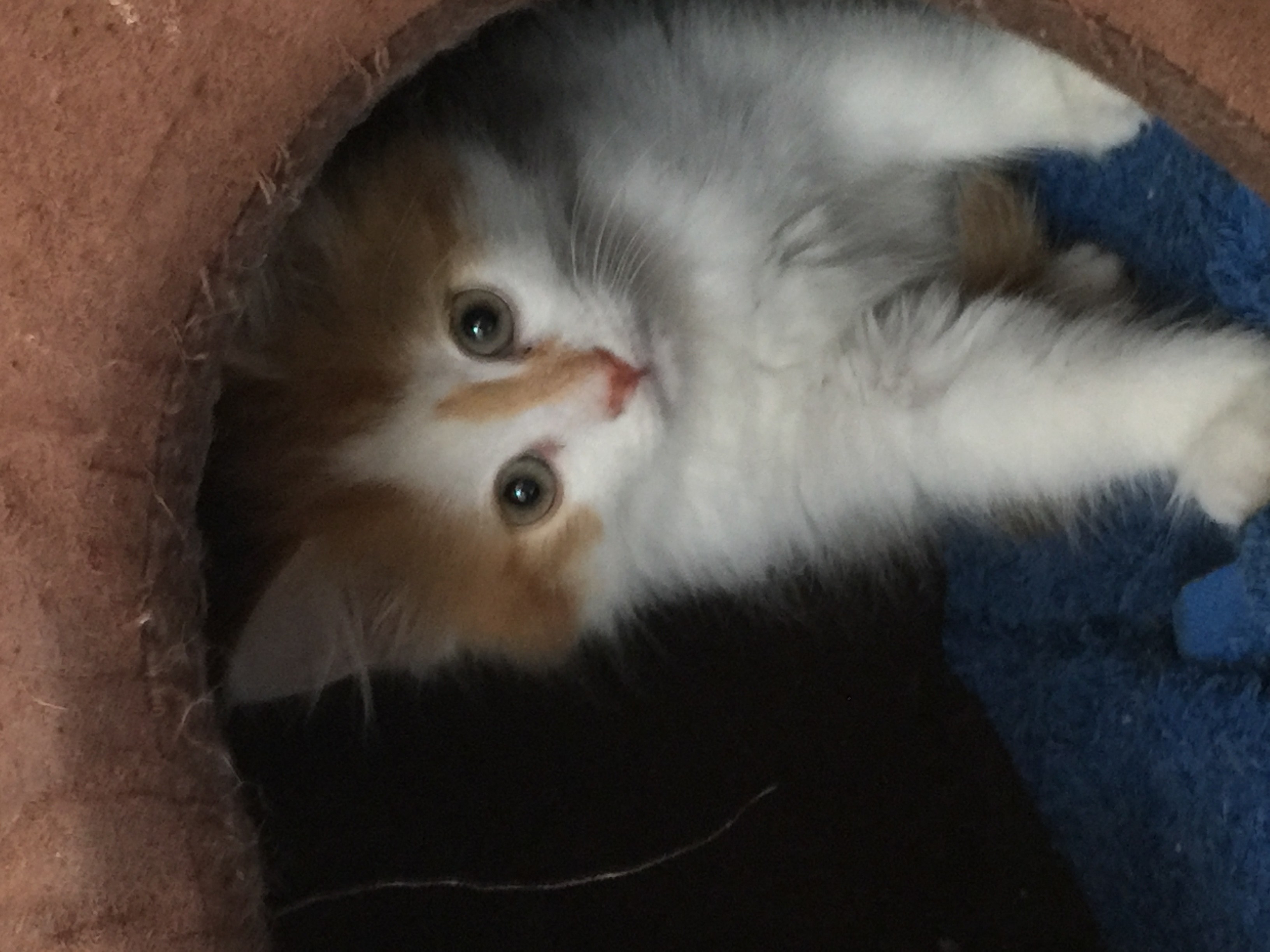 Nougat is a stunning white and caramel fluff ball. She's a little nervous at first but then can't wait to play with you or any moving object!! She started life on the streets so her genetic make up is unknown but she looks like and acts like a ragdoll. When you pick her up she flops in your arms! She is best suited to a quiet household with another cat with/without older children ***Nougat will only adopted to a strictly indoor household due to her colouring. Please visit our website and fill out the online application form at www.innercitystrays.com
