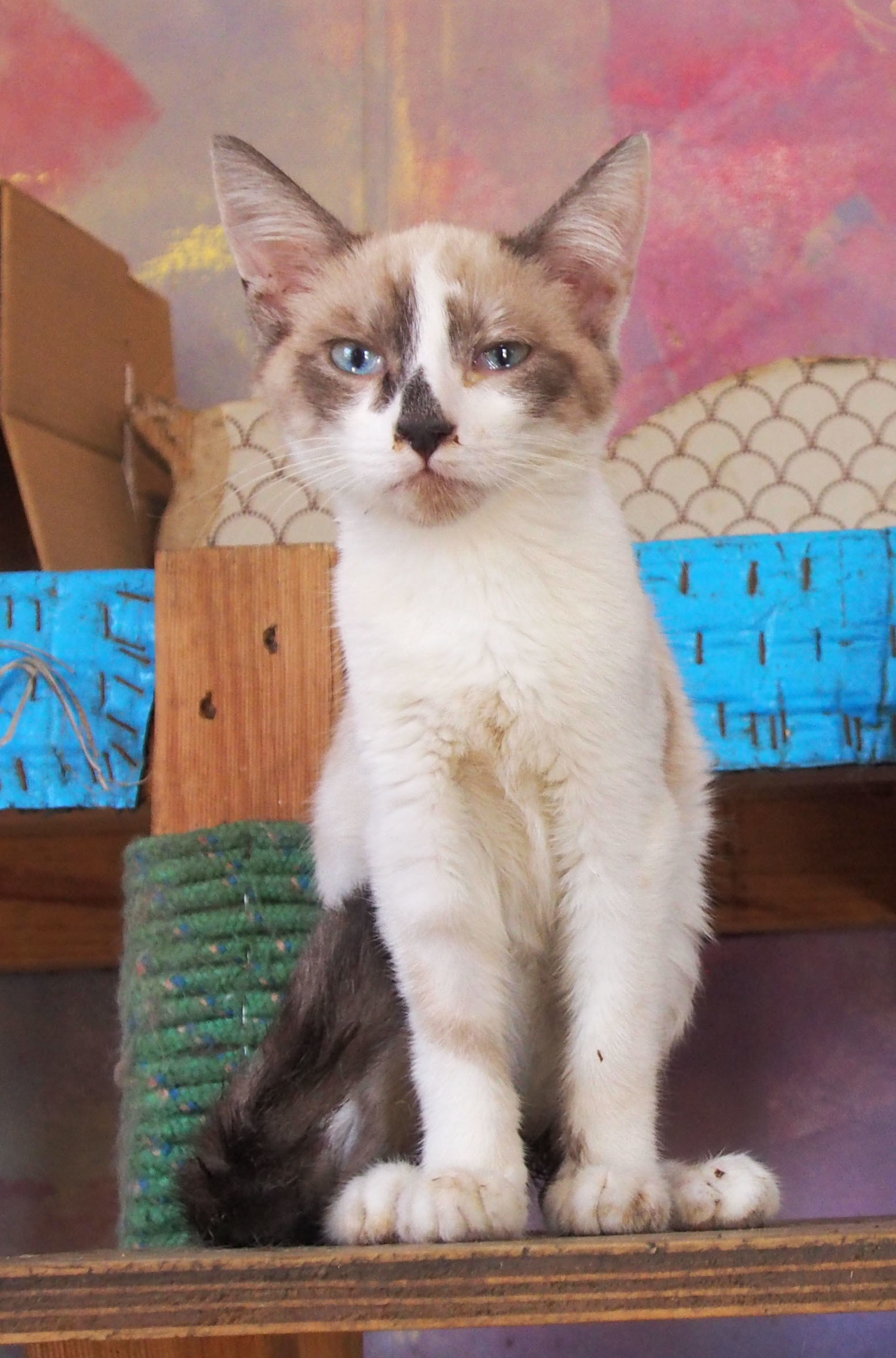 Bentley is a chocolate seal lynx point Siamese and is one of the B-Team kittens, His grandmother Beth with her nearly adult children were found at Grafton Showground early this year and were semi feral. Beth was the most friendly of the B-Team but we decided to keep her children to see if we could slowly get them to accept humans which all but one have. One of these was Bentley’s mother Betsy, we noticed she was putting on weight so we separated her from her siblings and allowed her to prepare for motherhood. She has been a wonderful mother to not only her own litter of five but also to three additional stray kittens. Bentley’s sister has already got a home, his 2 brothers, his sister and mother, with Bentley are looking for theirs. Mum is still a little stand offish and hisses when picked up but soon settles into your arms. The kittens are loving affectionate normal mischievous kittens ready to cause havoc in their new home. They are all desexed, chipped and immunised.