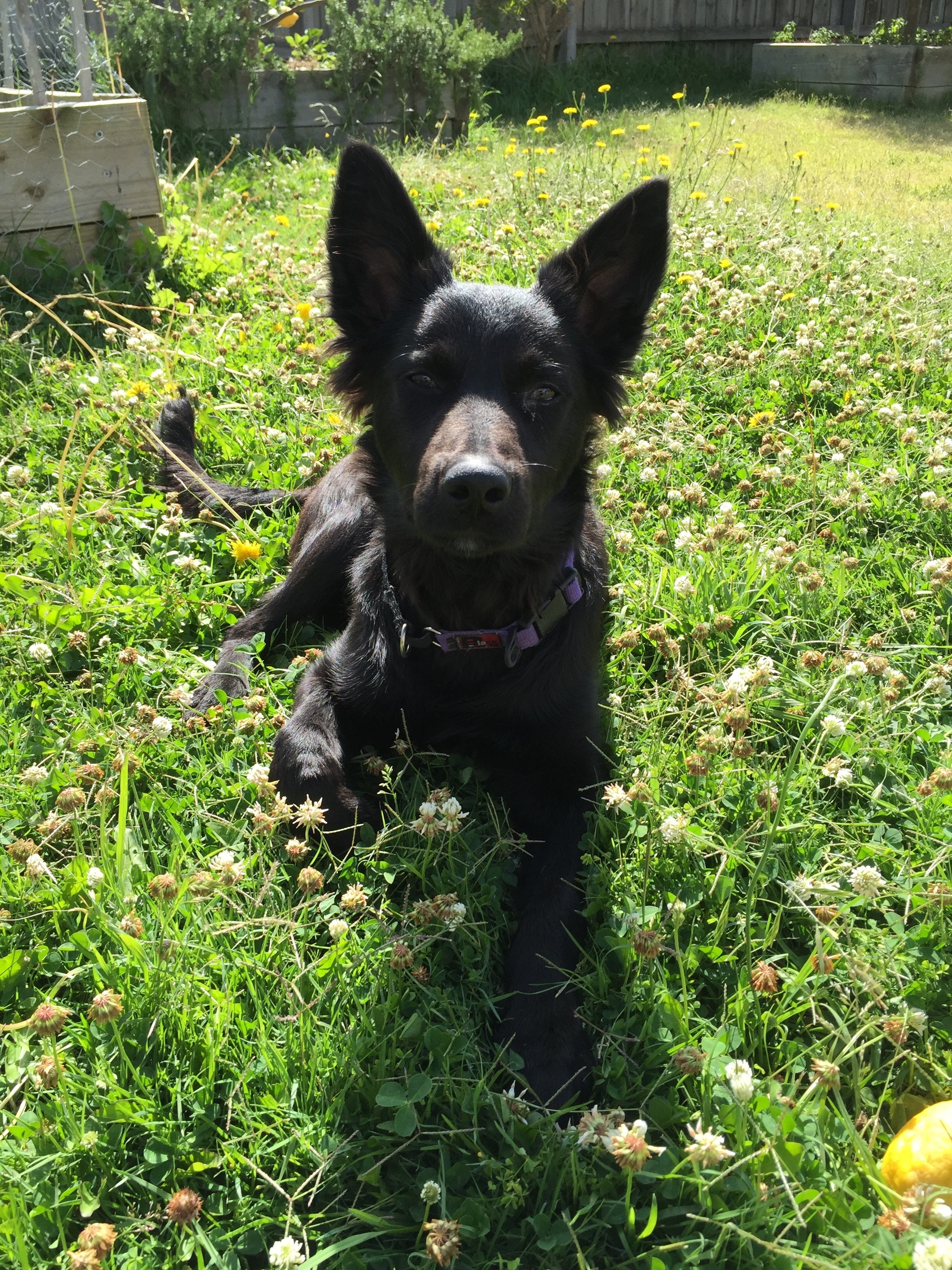 Banjo is a five and a half month old Kelpie x. In most ways he is a typical adolescent dog, cheeky and experimenting with just about anything he can think of. We have been working on issues like jumping up, excitement barking, stealing stuff and chewing. He is a very responsive young man, highly intelligent and keen to learn. He is able to sit and drop, “stay” in position, heel and is learning to recall. He walks well on lead most of the time.