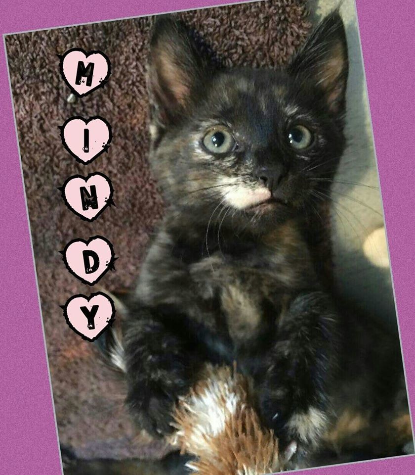 This precious little girl is available now for adoption. A very sweet little girl who is confident, independent and playful. She Is a curious little soul and loves to cuddle up on the couch knowing you are close by. Mindy gets on well with other cats and dogs and is looking for a very special family all of her own!