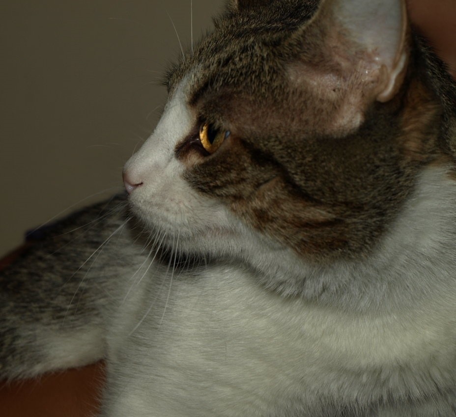 Bow is a charmer, likes to smooch your legs and get loving pats. He is currently living at the pound until we can get him into care where we find out more about him. He is ok with the other cats but prefers to keep to himself or be around the humans. He has the sweetest face any mother could love his chubby cheeks, real character, will make a beautiful pet.