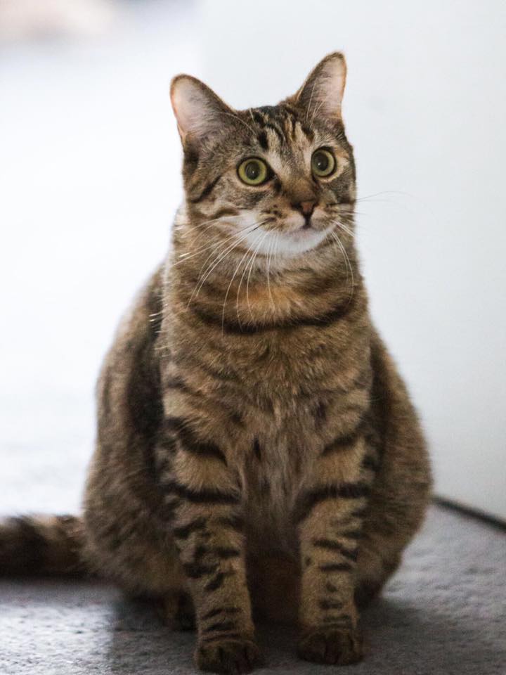 She is on the smaller side for an adult cat, but has the most scrumptiously plump belly, and is still very kittenish in nature - bouncy, fearless and inquisitive.