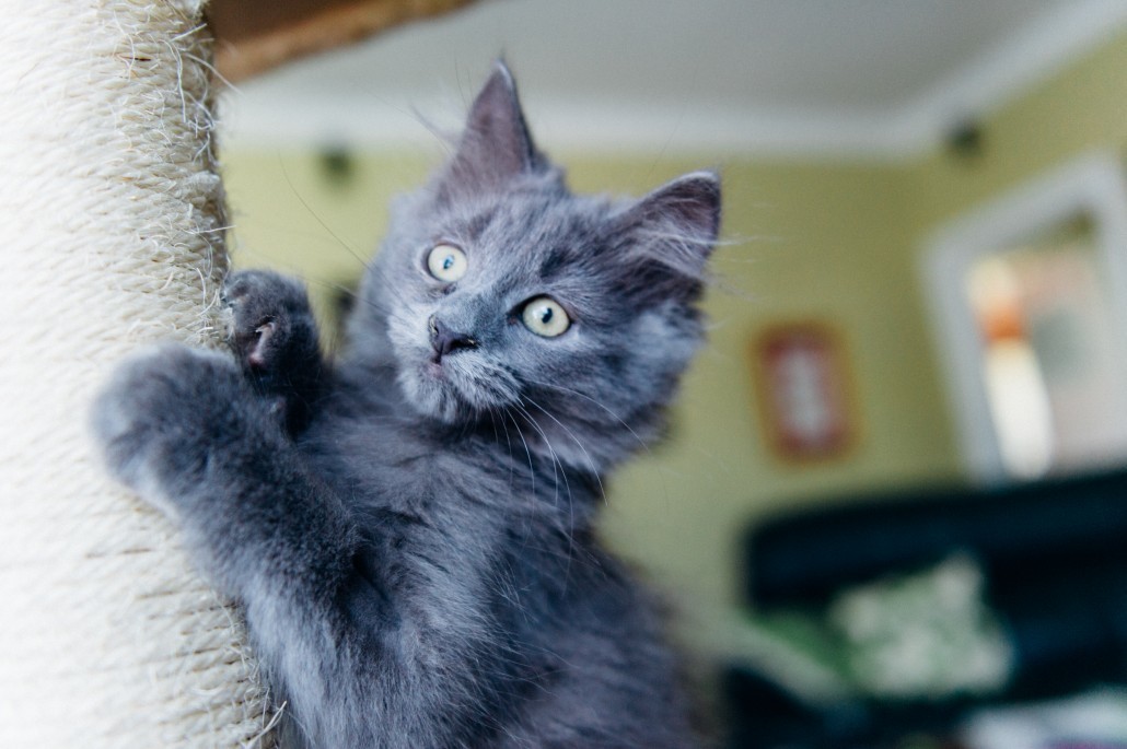 Diva is a medium long haired blue ( grey) with green eyes. She is 10 weeks old and oozes personality. She is pretty and feminine and equally cheeky and “in your face”. She is developing her manners but is often overcome by curiosity and impulse! (suddenly leaping onto your lap ) Diva is a real social butterfly who loves attention. She will sashay her tail, purr smooch and head butt with enthusiasm in pursuit of a pat! Loves to snuggle up and have a snooze with her people when tired out from play.