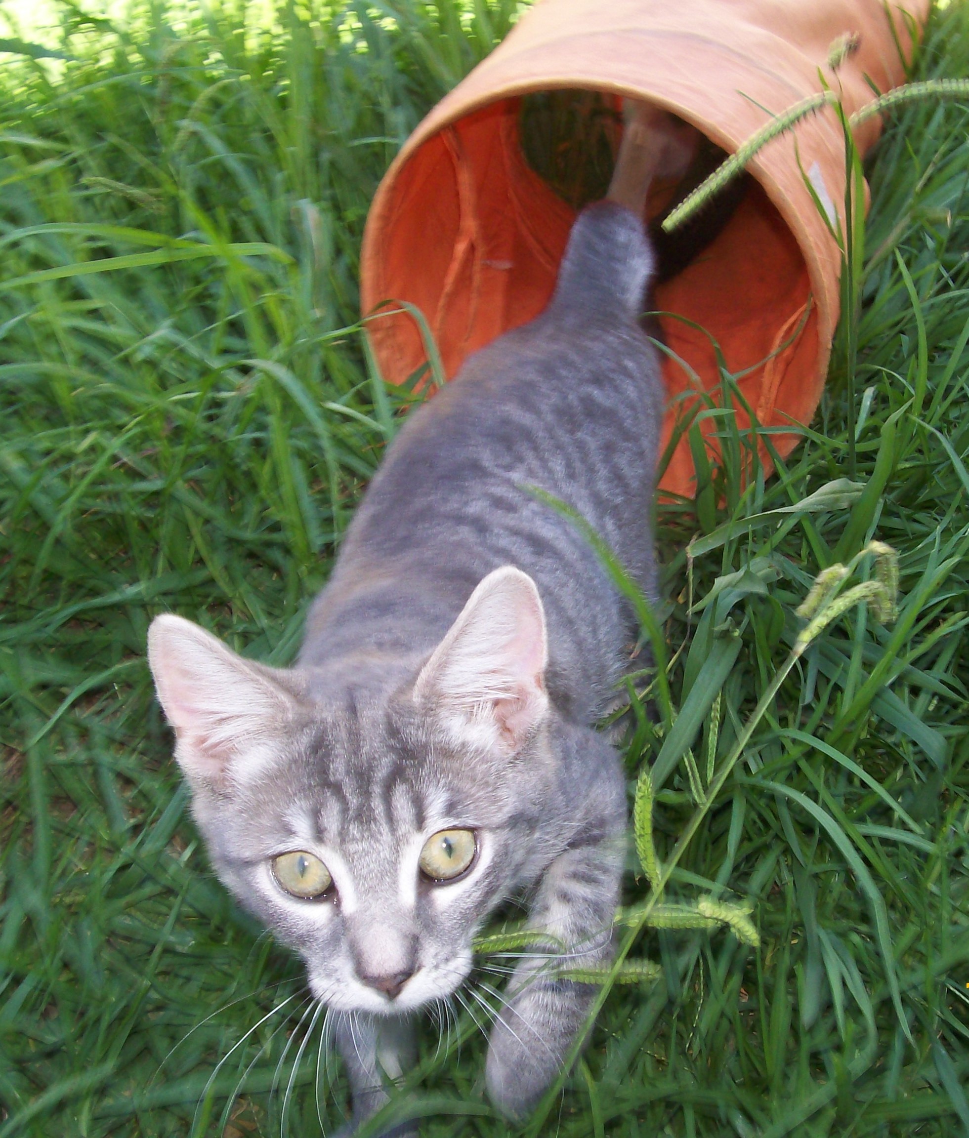 Grey Puff is a happy-go-lucky, trusting and loving natured big kitten. An absolute delight to be around, she is particularly affectionate and likes to come up for a snuggle. You will get gentle face butts and snuggles, and purring in your ear. She likes playing heaps, and likes other cats. Puffy has a stripey, silky, pewter coloured coat.