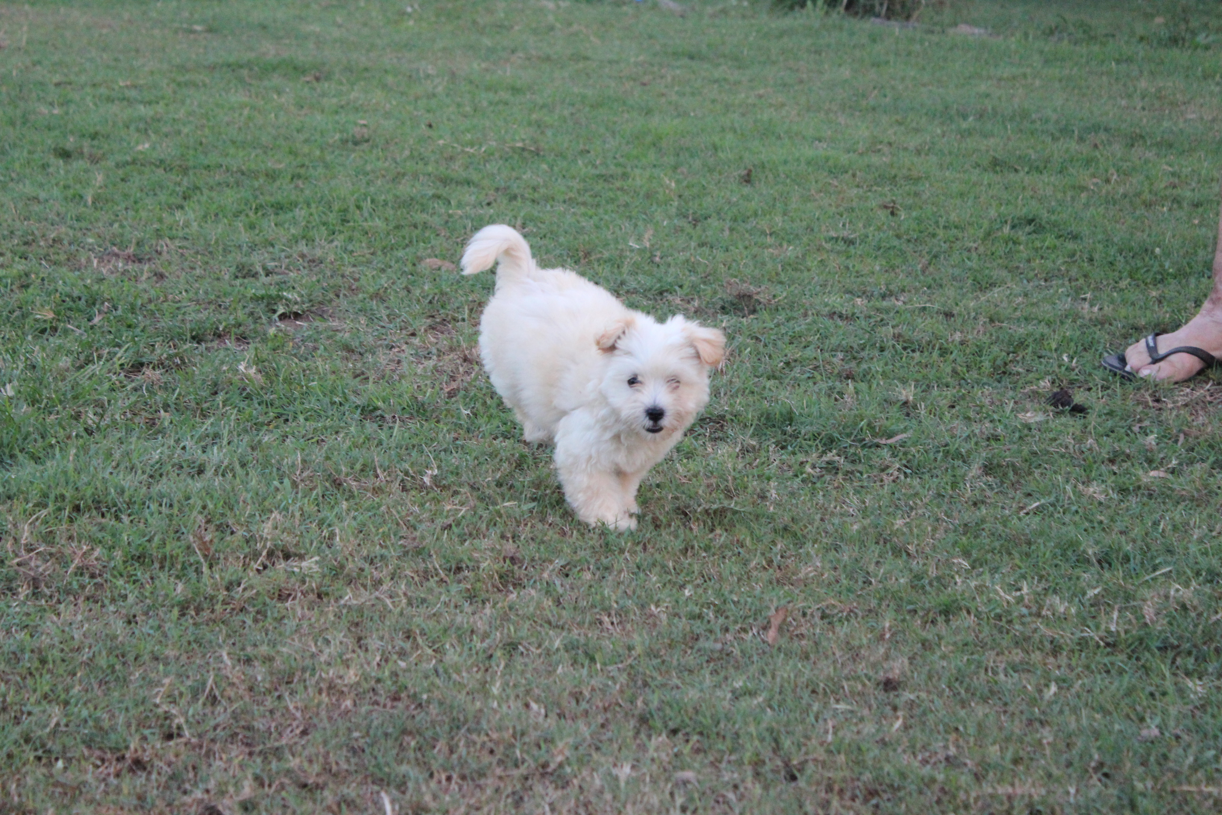 He is a maltese/cavalier/shih tzu mix and will be a small dog once fully grown.