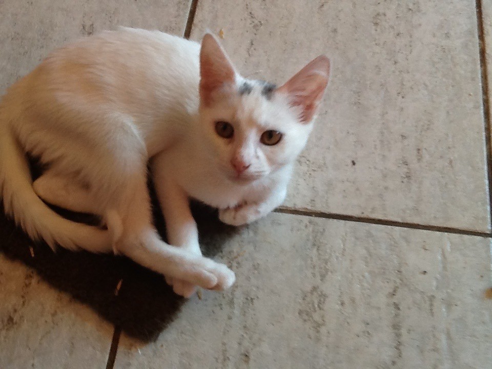 Being a white cat, she does need to be kept indoors at all time, which she doesn't mind at all.
