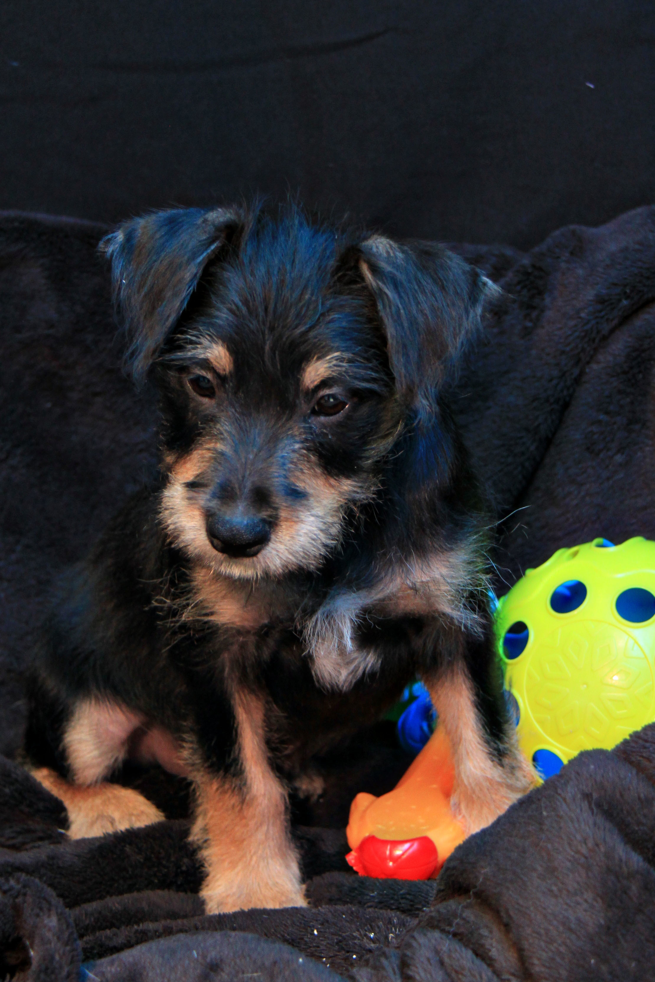 Emmett is a friendly boy. He's good with his littermates and loves to play. Being a pup he would benefit from training and/or puppy pre-school to help him grow to be the best dog he can be.