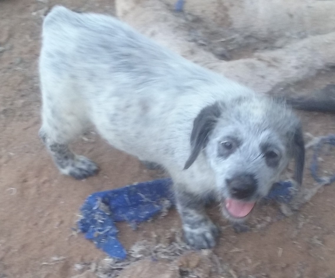 Mum, Teal, is a small build blue heeler (normal length tail), Dad is unknown. Some of the pups have hairy beards and coats but we dont know what breeds may be in the pups.