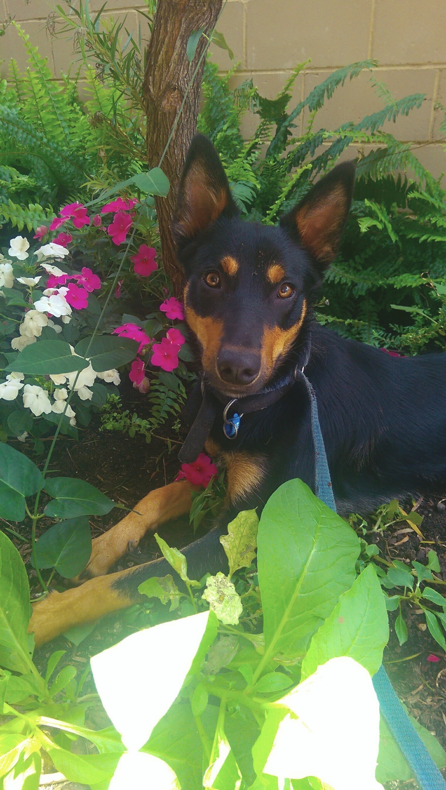 Hi Blitz is my name. I am an 11 month old male black and Tan Kelpie cross dog.