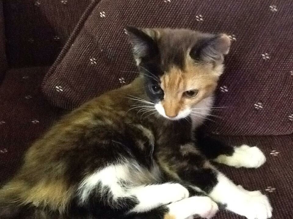 This little Miss is just adorable besides having gorgeous markings and being stunning she is extremely playful and will play with whatever she finds on the floor as well as every toy given to her , super friendly with other cats and loves to have a good romp , still is a little shy with dogs but won't run and hide from them , loves a big snuggle & will settle on your chest under your neck of a night for a bit of quiet time & she has the biggest purr for a wee baby but only has a tiny voice (meow) not at all scared of any new people coming to visit and will come out and greet them , will suit any forever home that is looking for a playful kitty.