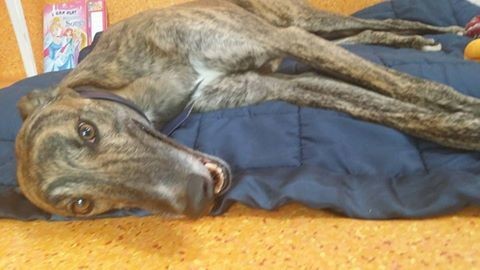 He is a big boy , over 35kg and very tall. True greyhound nature, even the young children here can lead him.