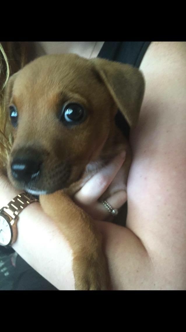 Meet XXXX, a gorgeous 9 week old male mix of Rottweiler x American Staffordshire Bull Terrier.