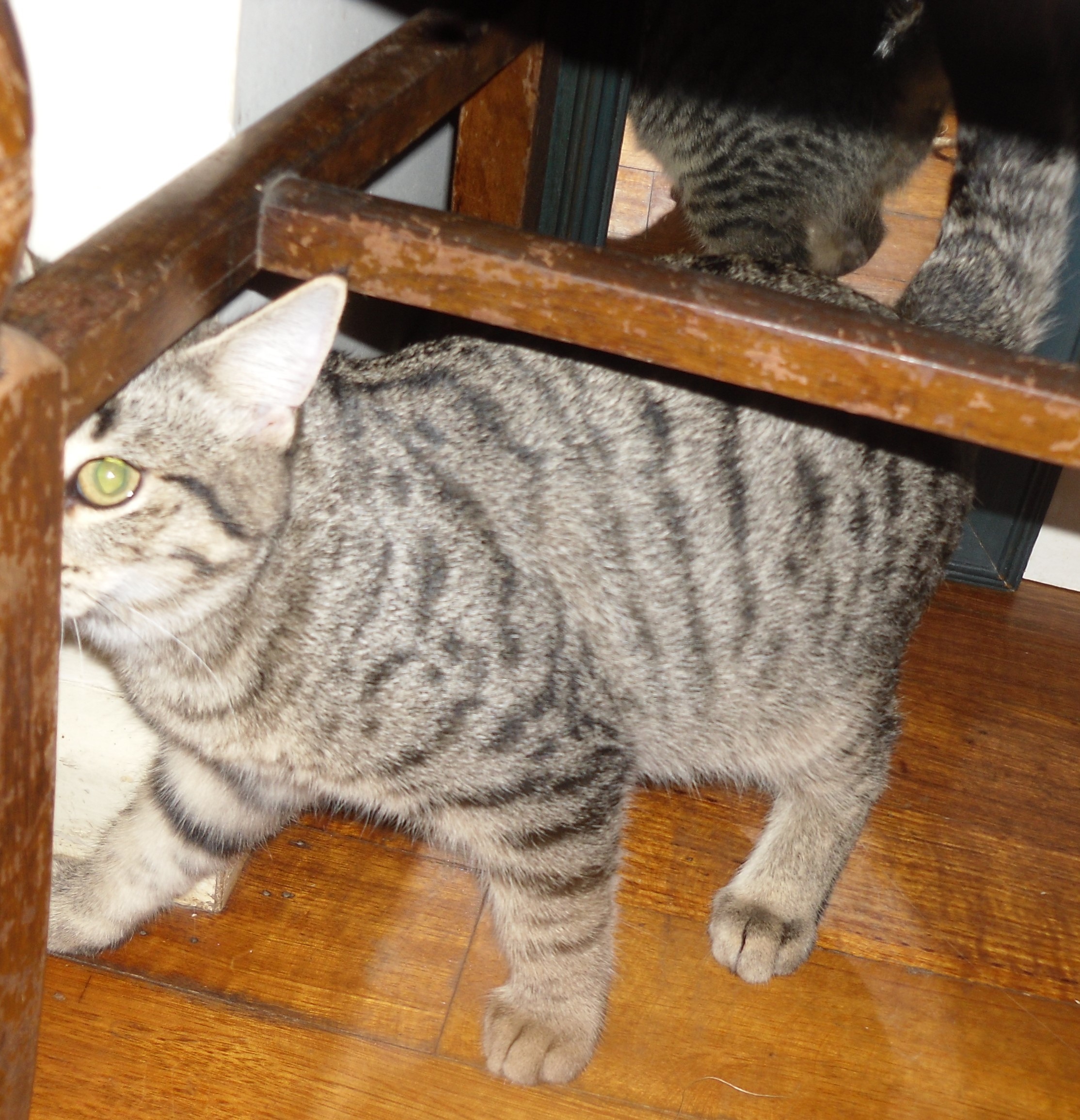Nugget, 14 weeks old, and so named because he is such a cuddly little nugget! Cute as a button tabby boy who is quite the little monkey; tad mischievous, very curious, loves to play, a total gad about, independent, and isn't adverse to a patt and a cuddle. Very hard to get a decent photo of him as won't keep still for 5 minutes!