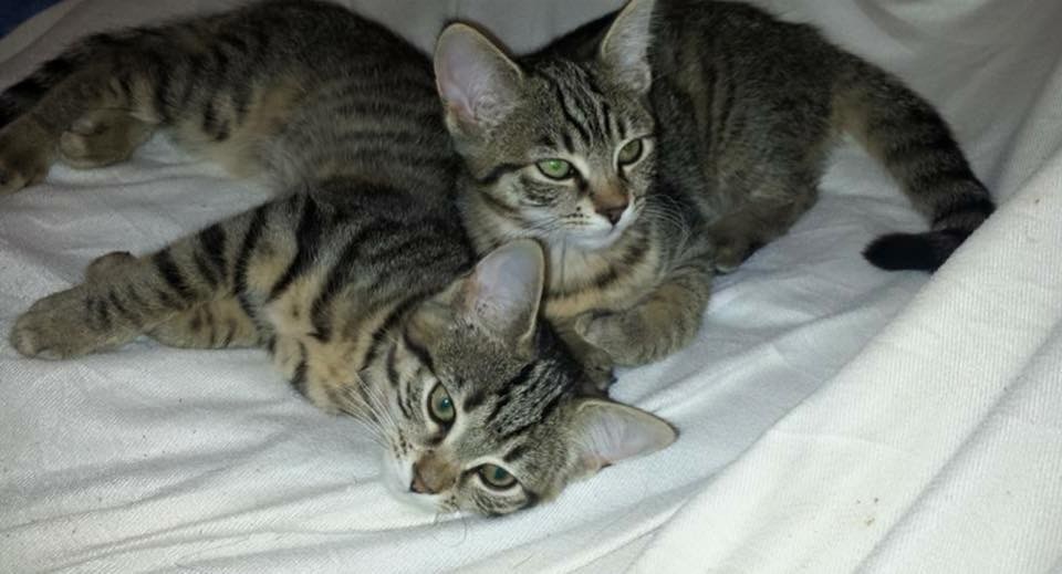 These tabby twins love nothing more than to snuggle and cuddle.