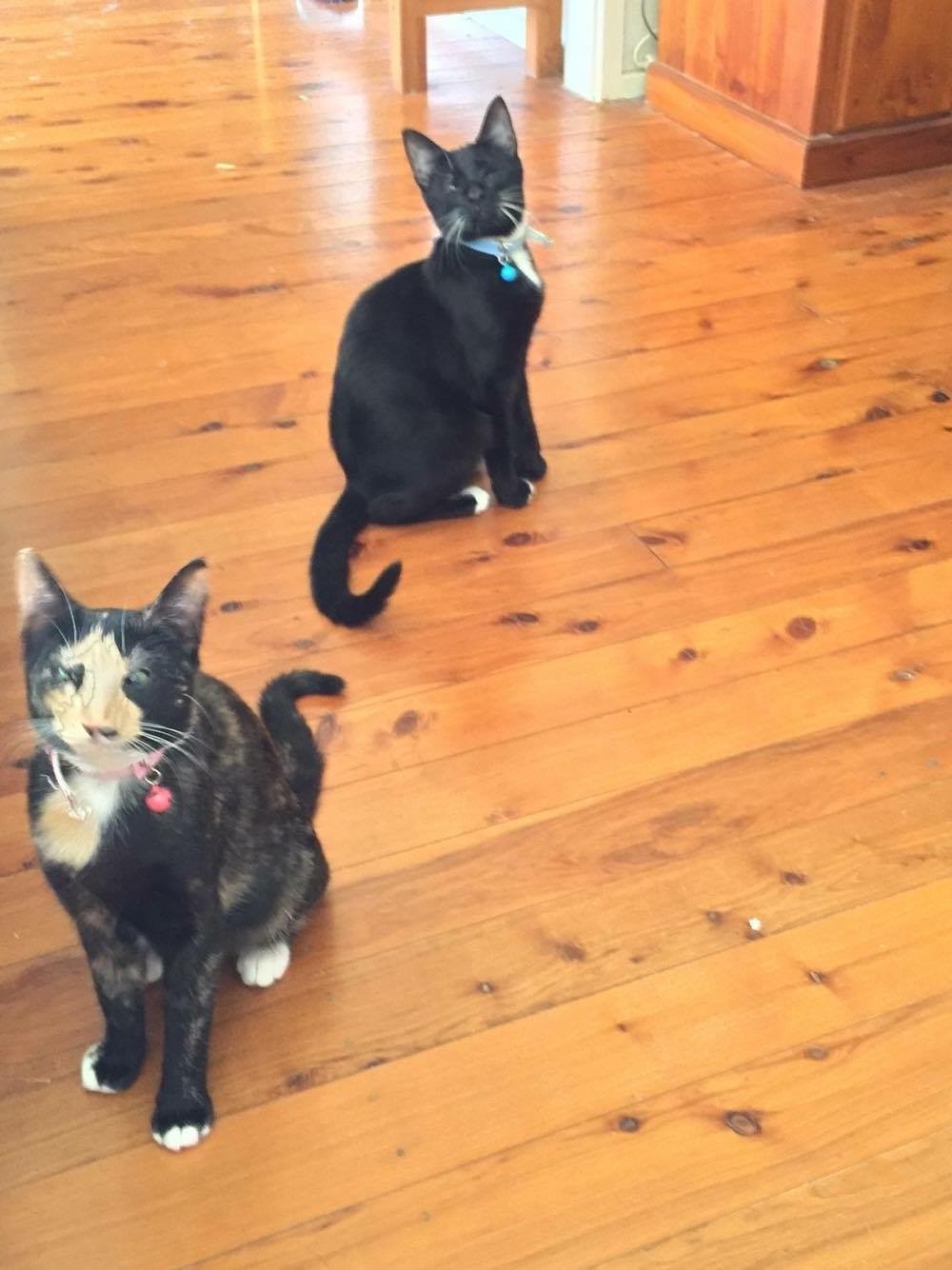 This cheeky brother and sister pair are two of the cutest cats I have come across, with the biggest personalities. Bella and Onyx are only approximately 8 months old, and have come an incredibly long way from where they started as strays, but they still have a little way to go. They have settled into home life well and are now very relaxed in an indoor environment, but it would be best if they were indoor only cats. They are a very playful pair and love their toys! I’ve even seen them trying to play with the knots in the wooden floorboards! They love to do everything together, which is why they need to be adopted together. It would be heartbreaking to split these two up!