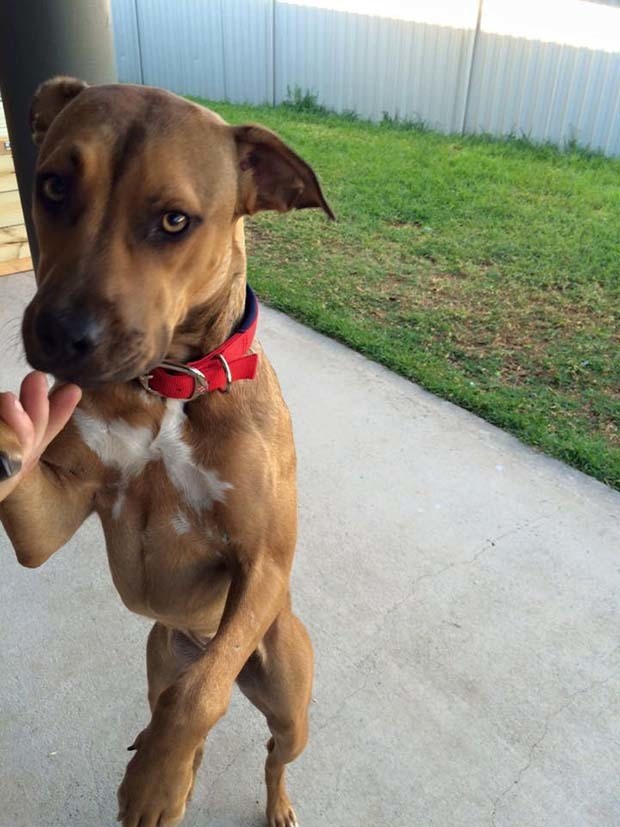 Although she looks tough and is incredibly lean, she is an absolute soft soul. She has a beautiful temperament and in the short time she's been in care she nearly has the basics down pat. She sits on command, doesn't jump at people, shakes hands, doesn't bark much, and is fantastic on the leash.