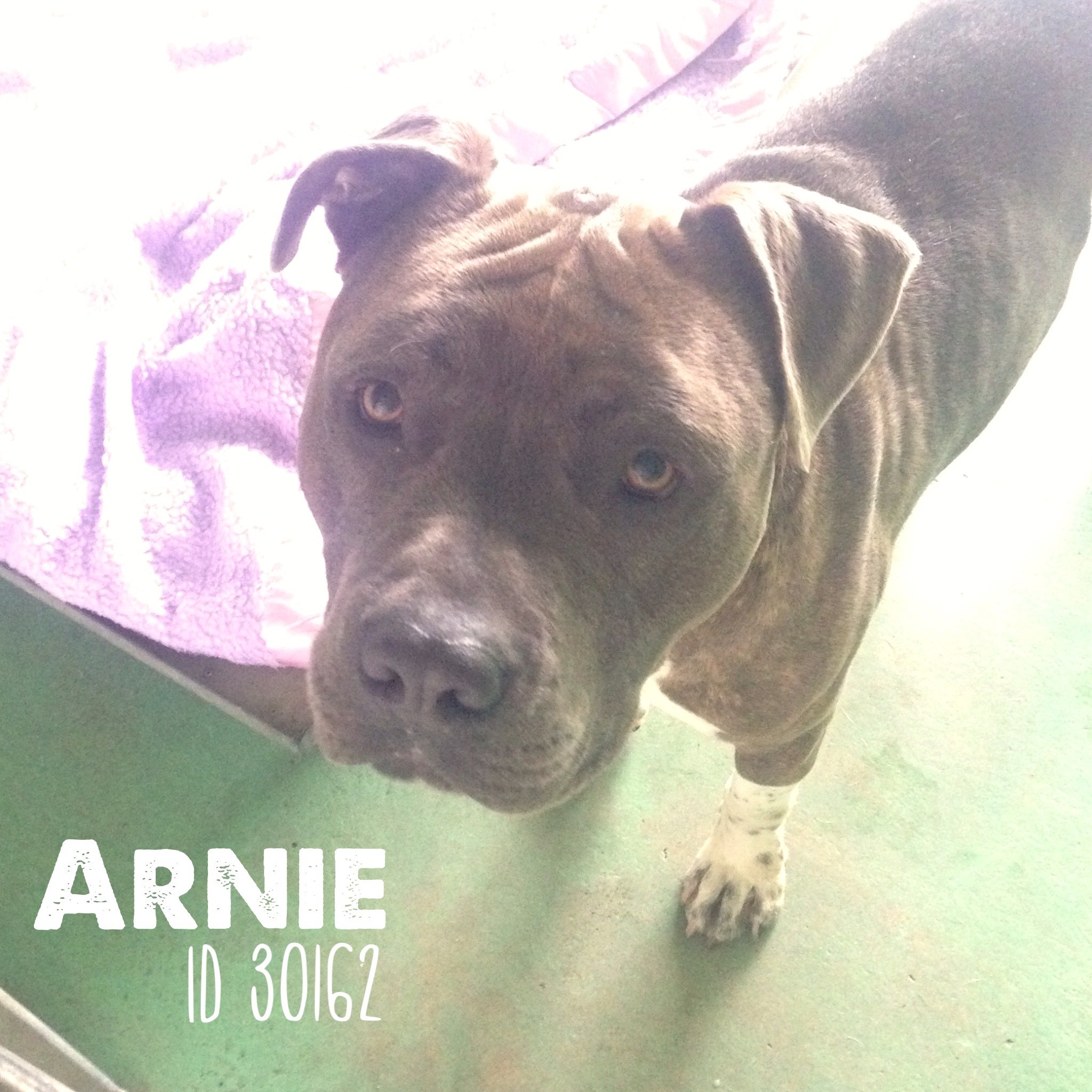 Arnie can be very strong on lead but we're training him to use a Halti which he walks well on. It'd be a great start to Arnie's new life if he was taken to obedience school to teach him some focus while in the presence of other dogs.