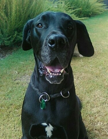 This is Shadow, a black female Great Dane, and yes if she could be your shadow all day long she would be. She is a very loyal, loving girl always looking to please her human and over the moon when she gets an ear rub as her reward. At 5 years young, Shadow is still absolutely full of love, life and bounce. Her daily walks are a big highlight where she walks like an angel on lead. She’s happy to heel and come close to your side when ever asked or 'walk on' should a distraction pop up. Her other favourite past times include playing with her toys and fetch with her ball.