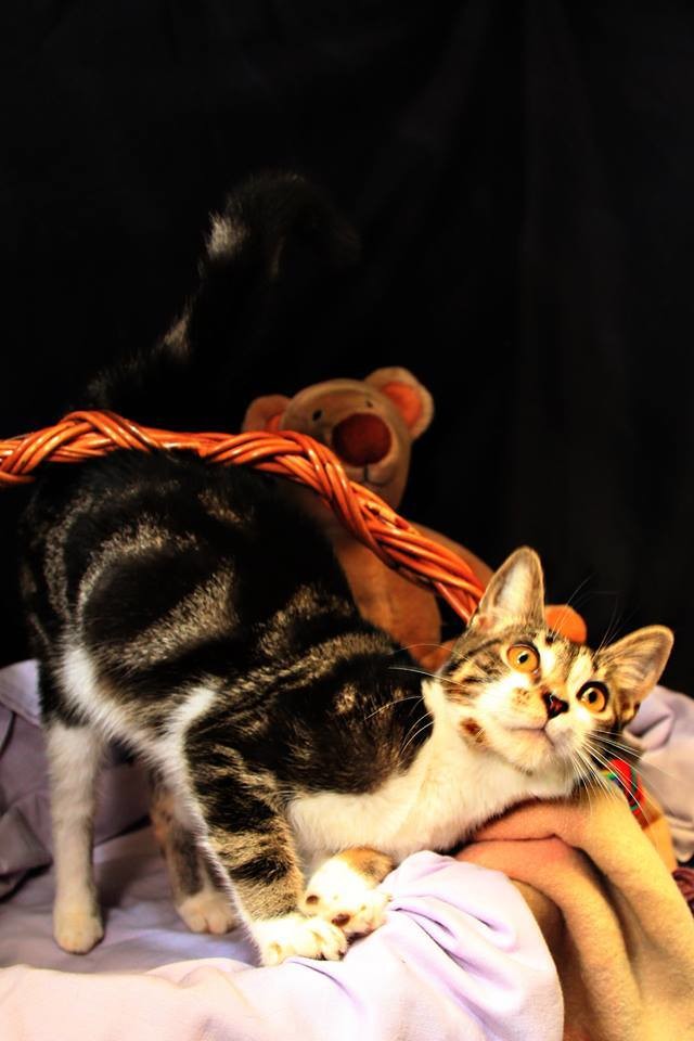 This is the SMOOCHYEST kitty in the world! George just wants love, all day everyday he is up for cuddles and kisses. He gets along well with both cats and kittens and like any young kitty he enjoys playing and exploring. George has a special place in our heart here and is sure to win your heart too.