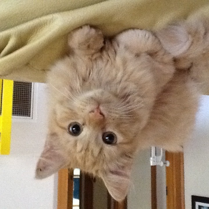 Erik is cuddly and smoochy, and wants a human of his very own. He spends a lot of time sleeping on his foster carer's bed during the day, and snuggles up next to her on the pillow at night. He likes to put his paws in her hair and knead!