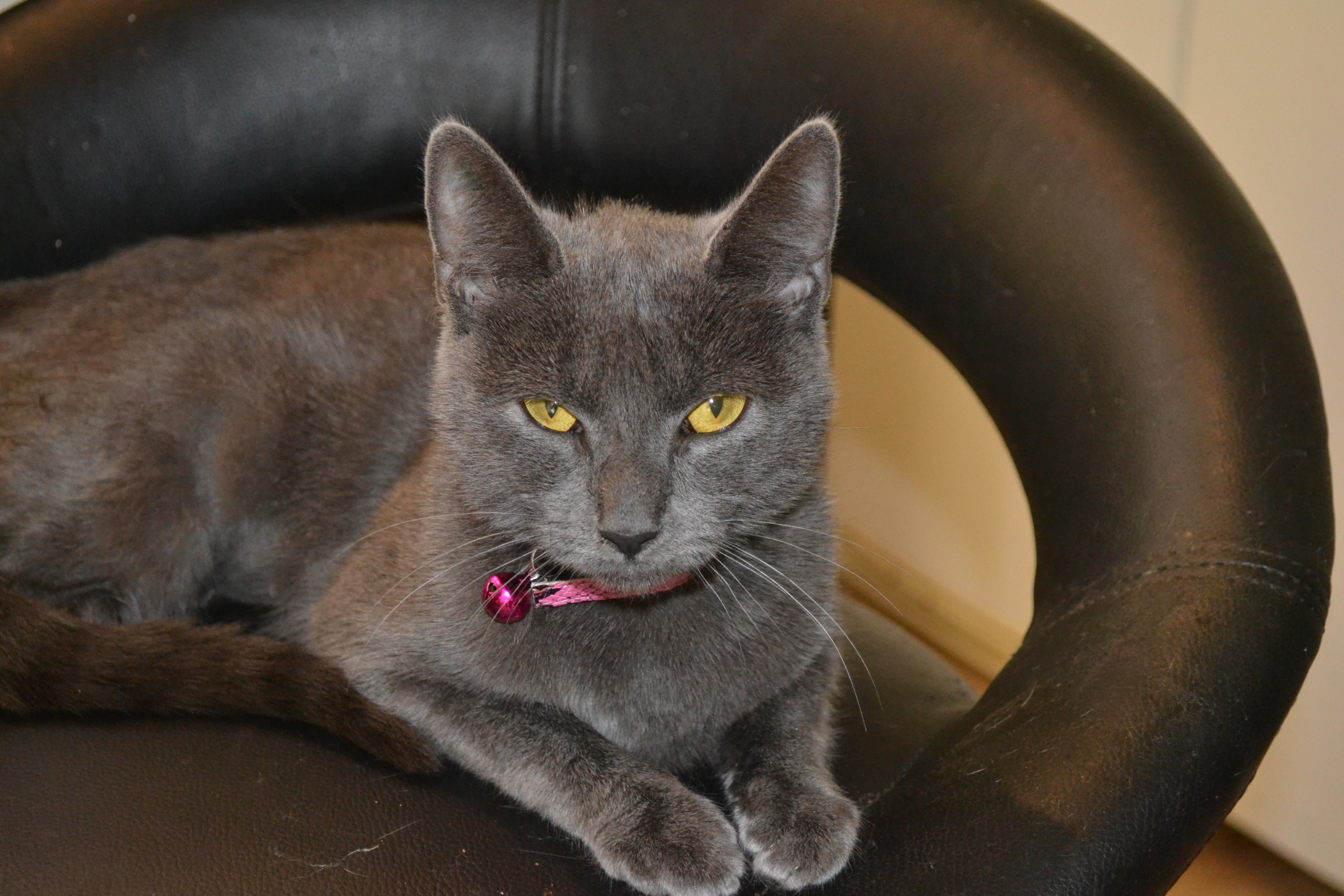 Teigan is a stunning young blue girl, possibly Russian x that came into care after being saved from the local pound, hard to believe that no-one came for this girl, whether her owners didn't think to look for her at the pound, I don't know. Teigan is the pound was quite timid, but a couple of days in care, she is a totally change girl, super affectionate, loves a chat, no problems with other cats and seems fine with dogs. This lovely girl will make herself at home in any situation.
