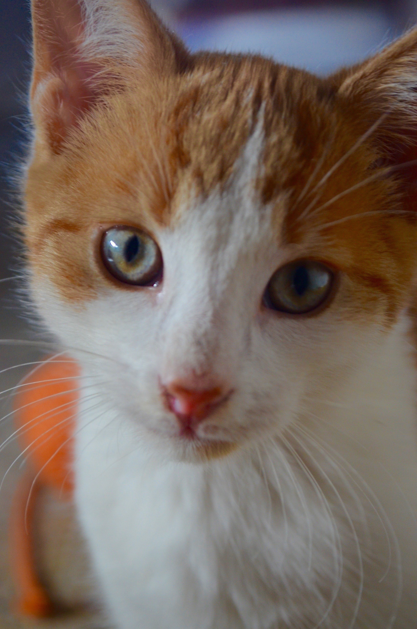 This little guy starts purring when you pick him up or pat him... he just so happy! He loves his toys and his food... and thinks that humans make the best hot water bottles at night. He is energetic and is flat out whilst awake and then finds the cutest little places to sleep away his food comas and play sessions. He gives cute little nose touches and will quite happily watch the mouse icon on a computer screen (in other words you won't get any work done!) - right now he is sitting beside the computer screen looking at me with his adorable little head tilt :)