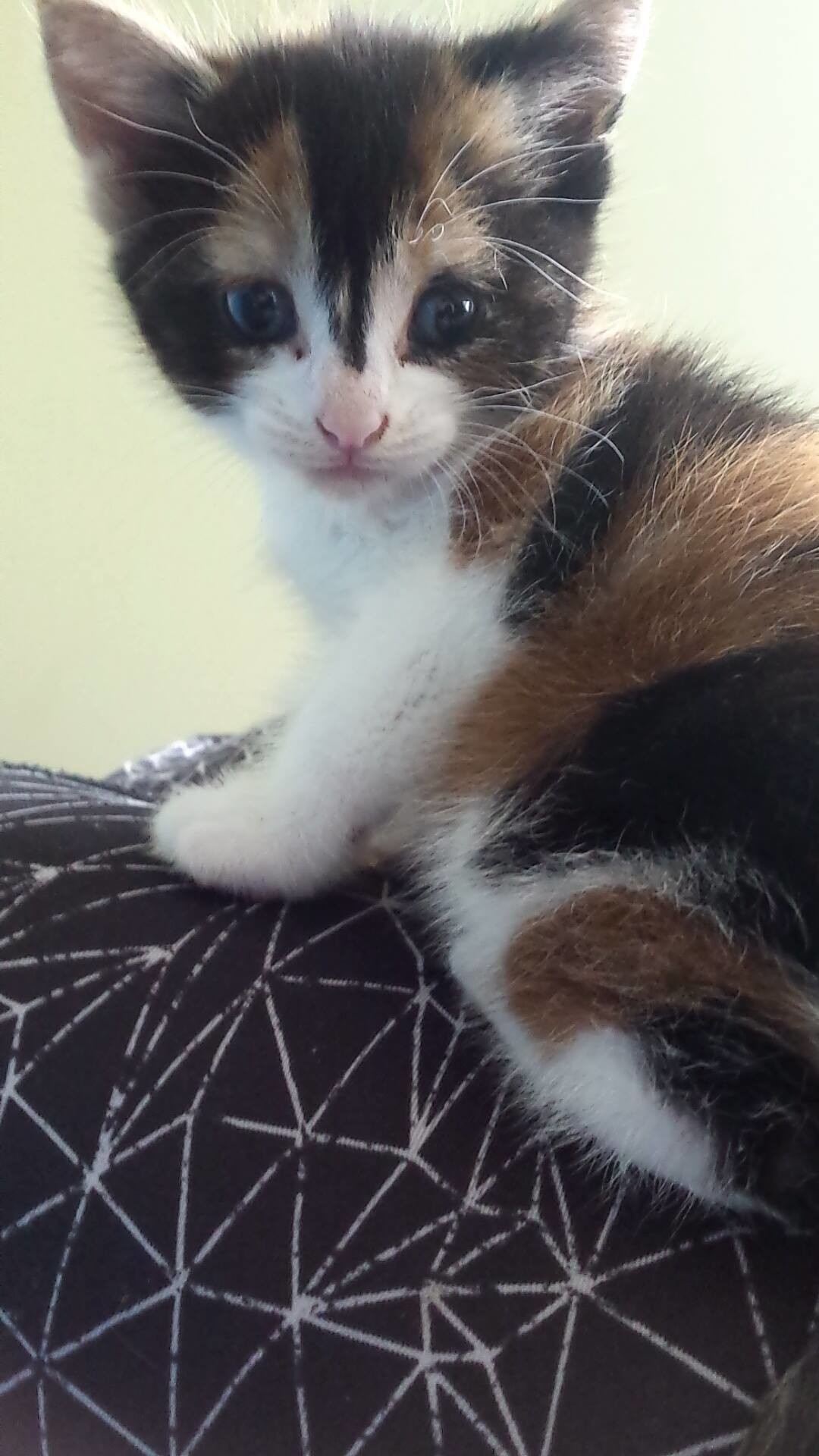 Hi, name is Mini! I am 1 of 4 siblings, all 8 weeks old (as of 24/04/16). I am a kitty that loves to play with my sisters and brother! I am a half and half personality - half the time you will find me chewing on the ears of my siblings and the other half of the time you can find me snoozing atop the cat tower. I love to play with scratching toy my foster mum bought us and often impress her with my gymnastics skills!